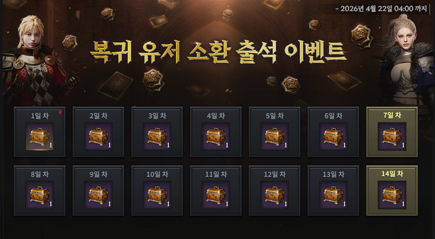 ※ 참여 조건 : 2026년 3월 25일 점검 이전 15일 동안 접속 기록이 없는 로드님