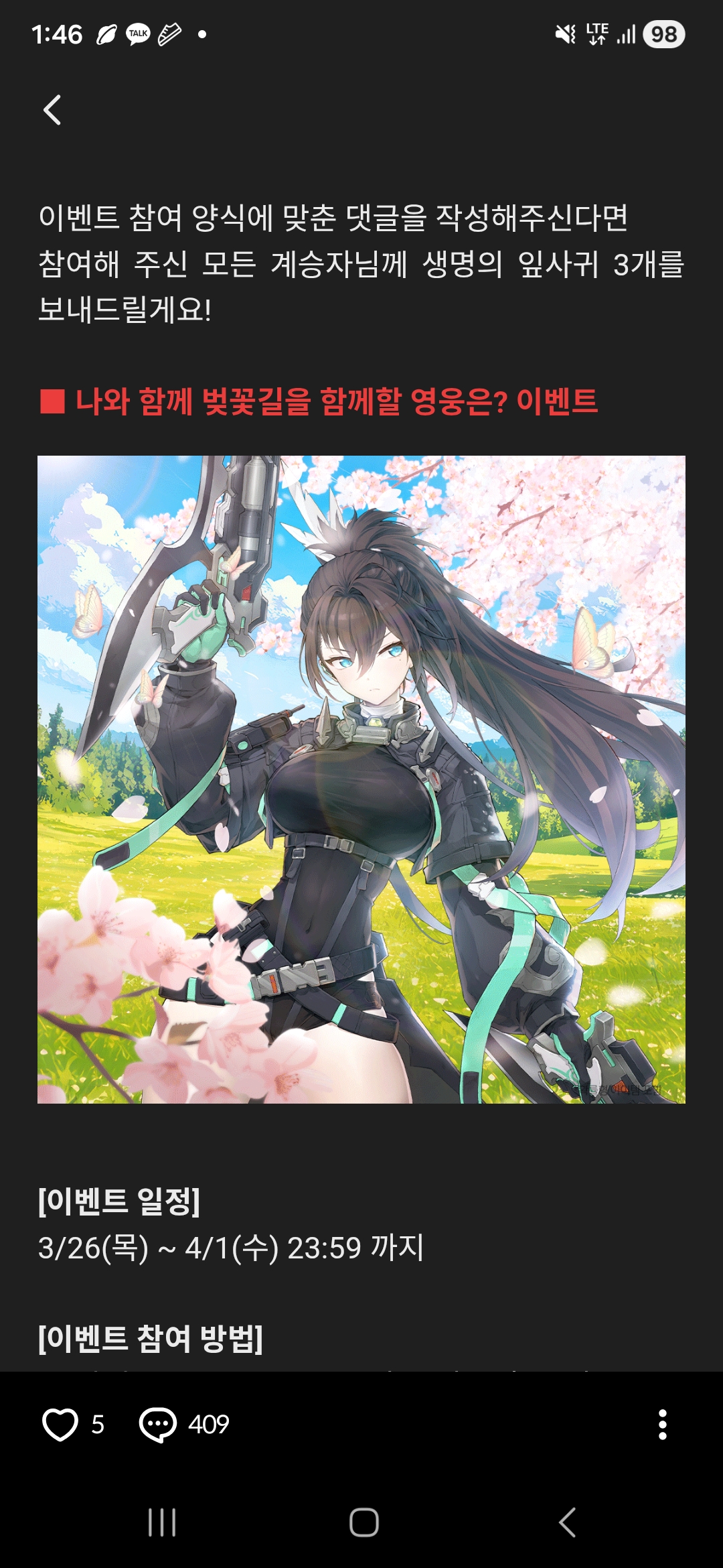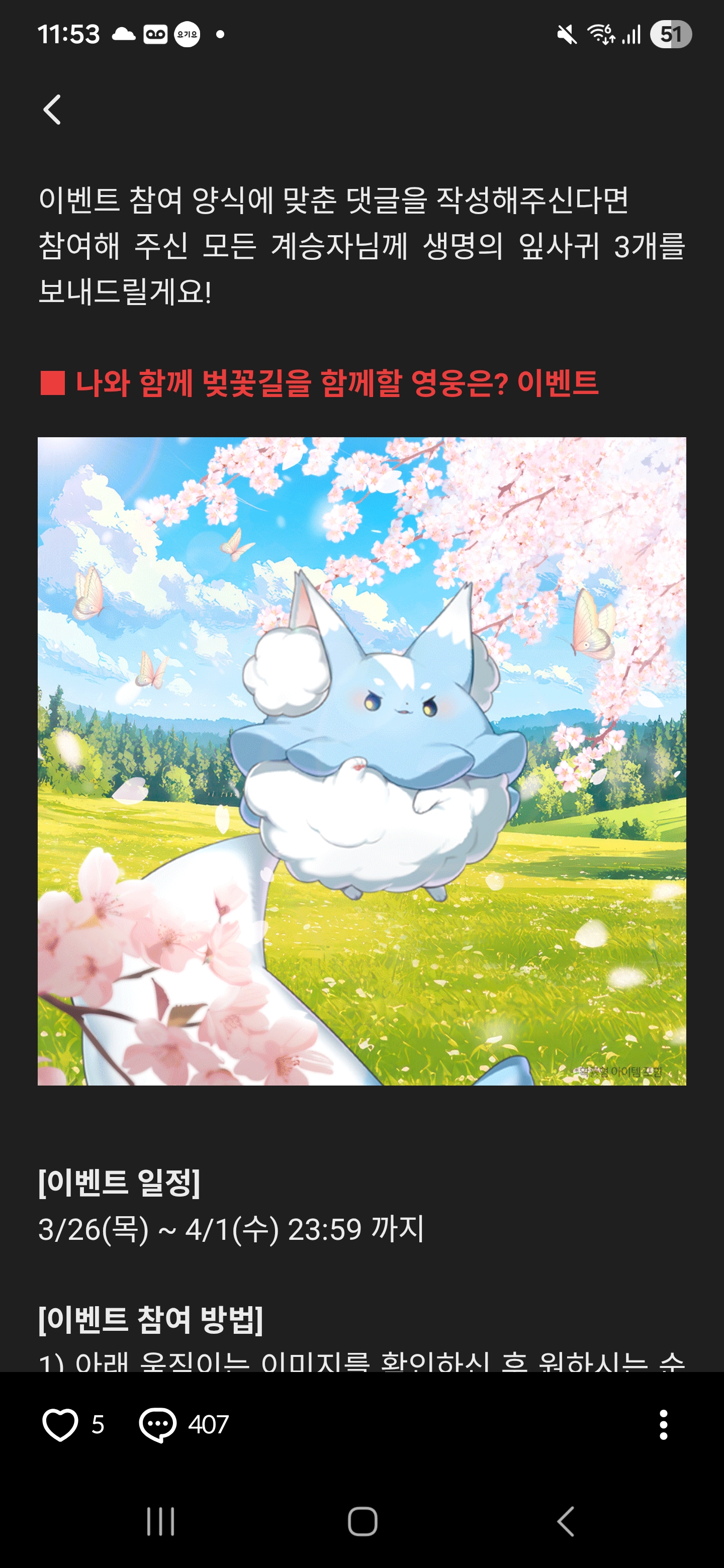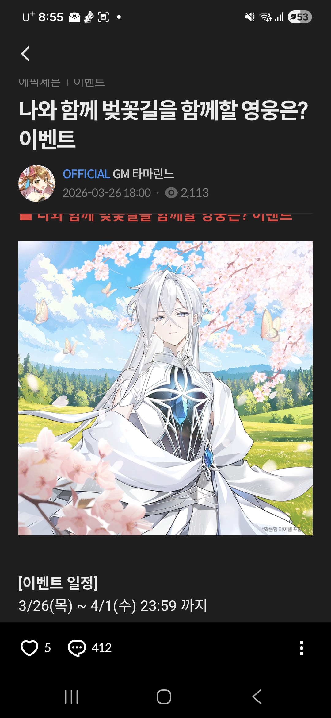 ■ 나와 함께 벚꽃길을 함께할 영웅은? 이벤트