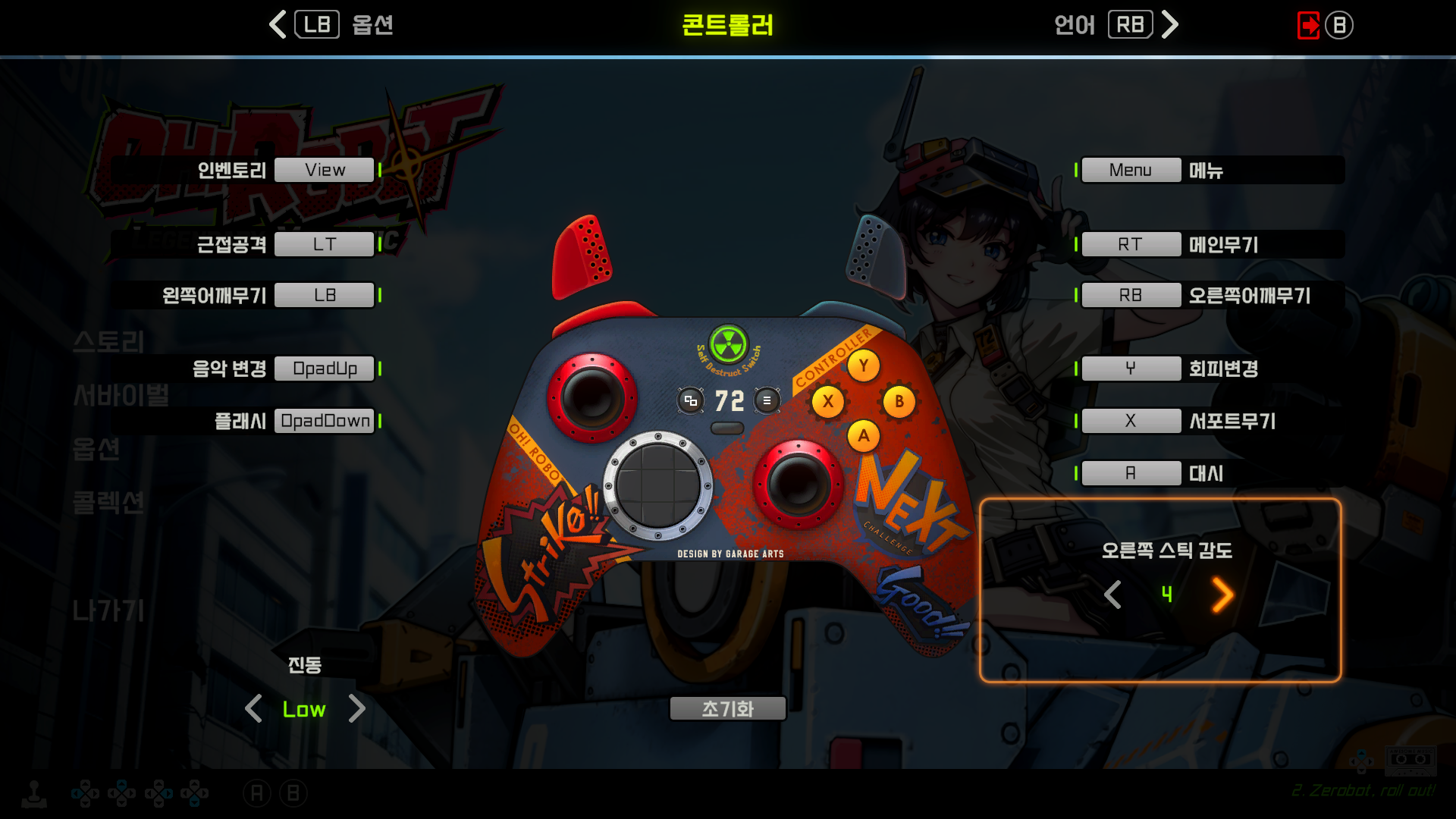 스토리 모드에서 모든 메뉴를 좌측으로 이동했습니다. 게임패드의 스틱으로도 이동할 수 있습니다.