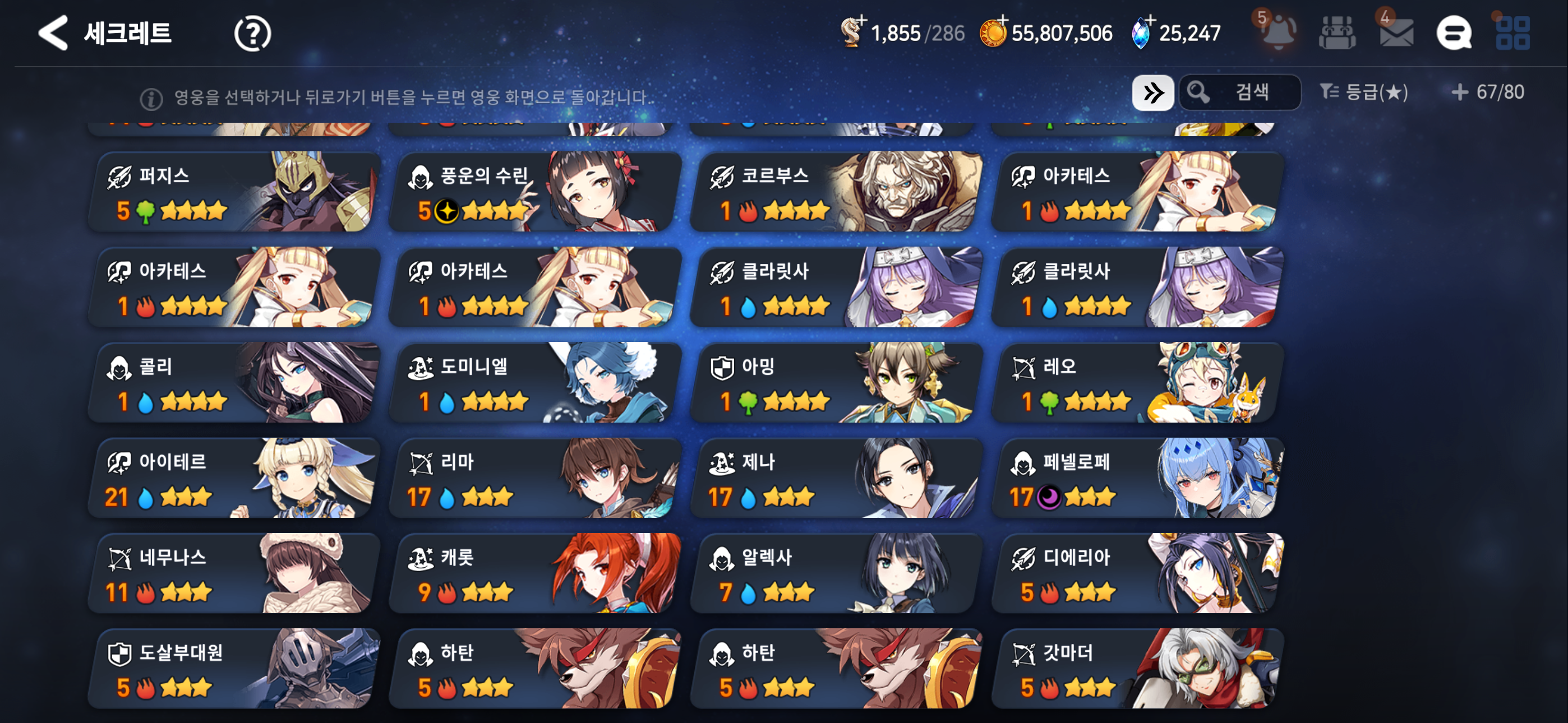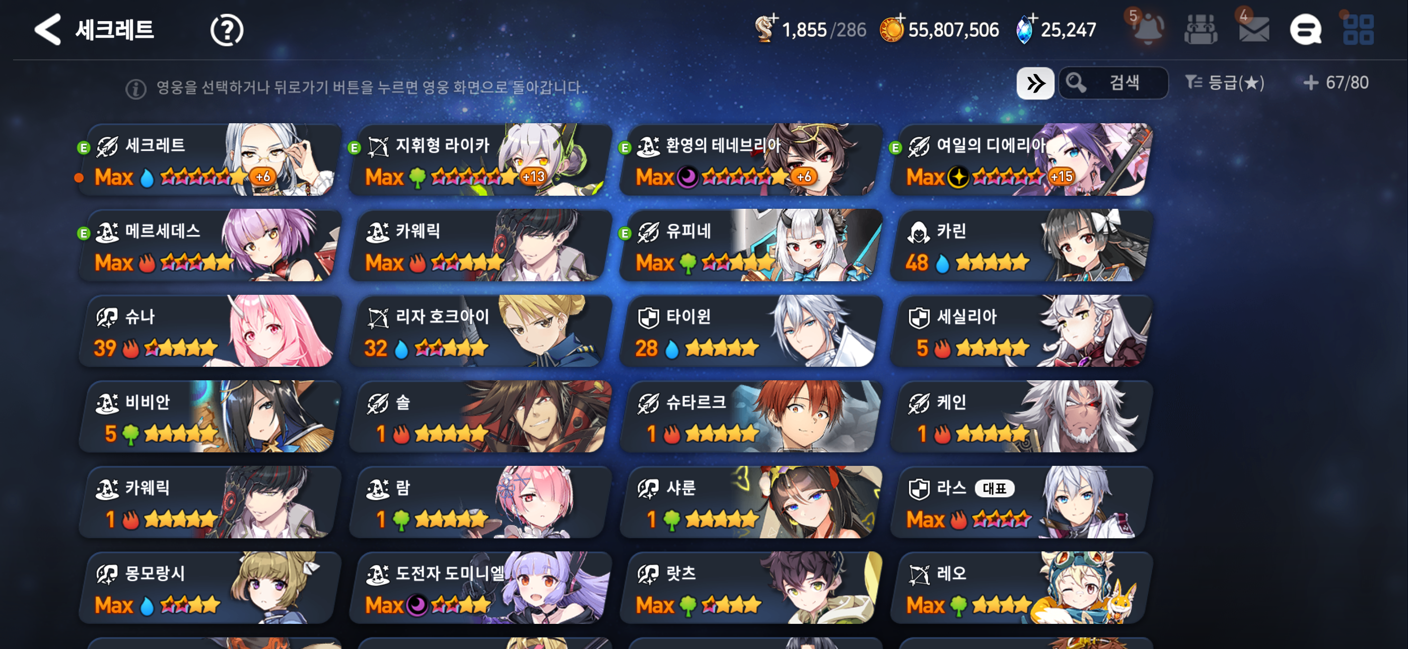 신규로 시작하시는 편이 나을 것 같습니다. 성약은 게임을 즐기다 보면 자연스럽게 모이기 때문에 보유한 한정 / 월광 리스트로 판단하시는 편이 좋아요.