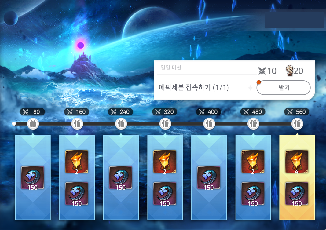 행동력 200개 소모 (분광코어 구매 제외) | 30 |
