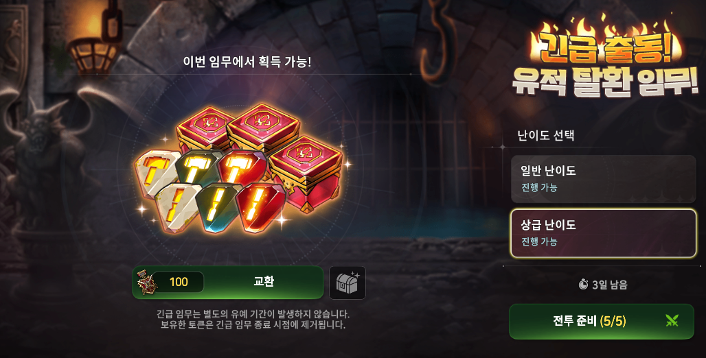 - 긴급 임무 클리어 시 이벤트 토큰 [정예 유격대의 훈장]을 획득할 수 있습니다.