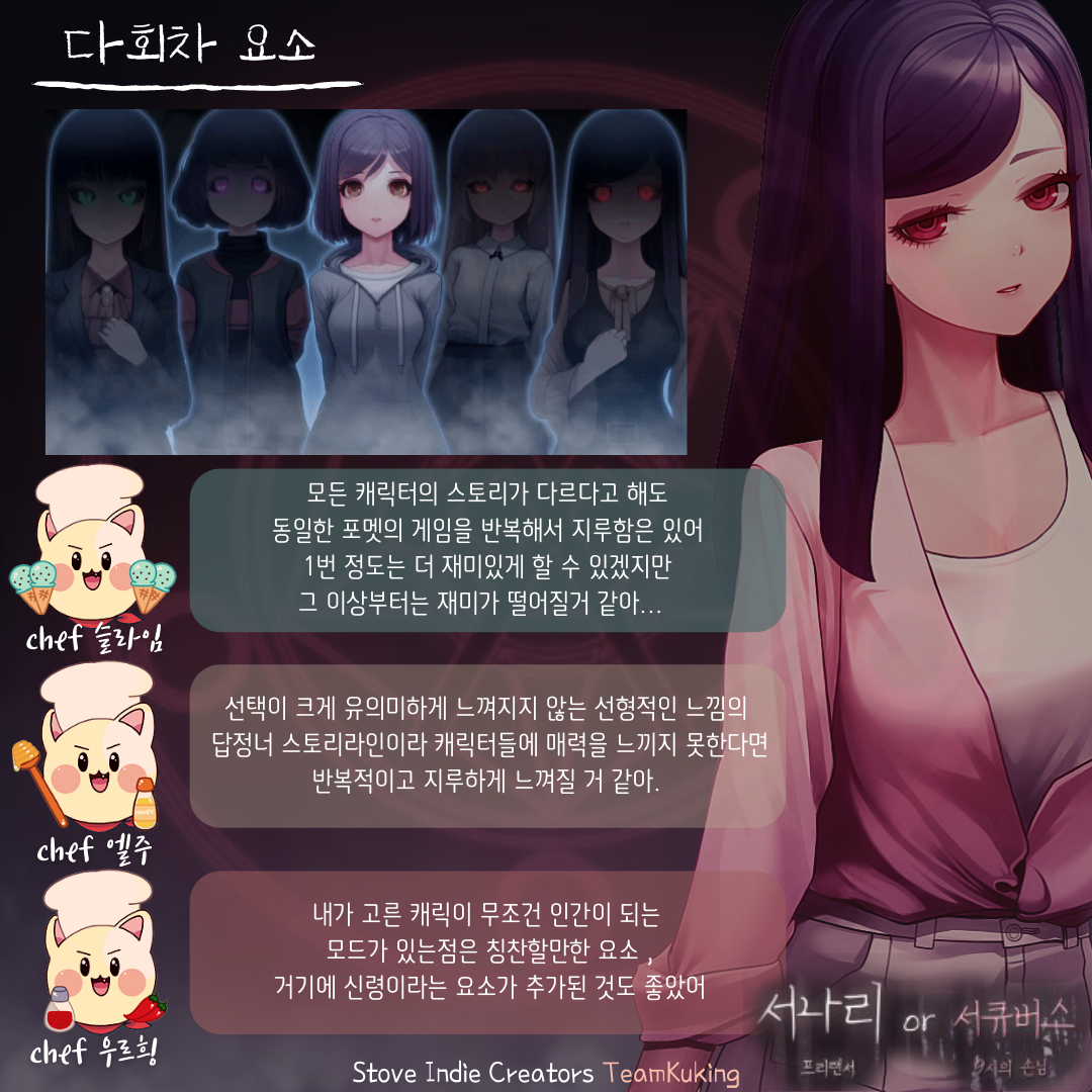 쿠킹팀에서 👻노베나 디아볼로스👻를 플레이 해보고 팀원들과 각자의 리뷰를 담은 카드뉴스를 제작했는데요!