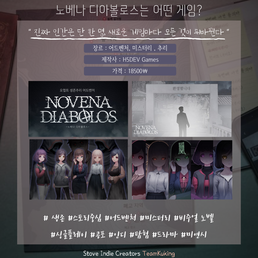 노베나 디아볼로스는 비주얼노벨 장르와 추리장르를 결합한 독특한 형식의 오컬트 미스터리 추리게임입니다!🕵️♂️