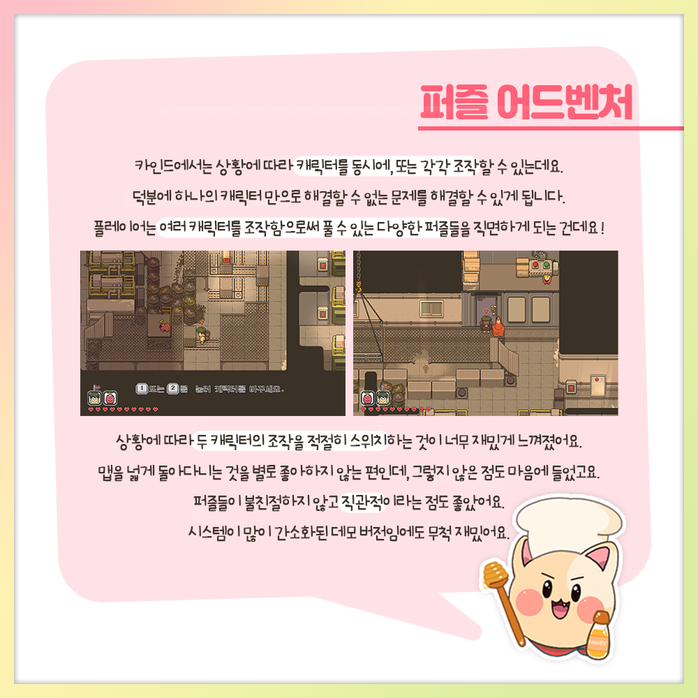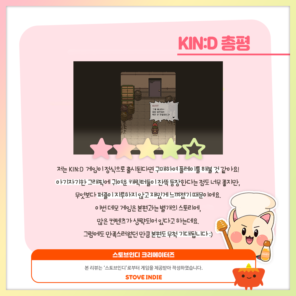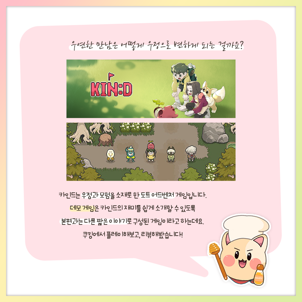 쿠킹 팀에서 <KIN:D> 데모 버전을 플레이해보고, 플레이 후기를 담은 리뷰 컨텐츠를 제작해봤어요. ✍️✍️