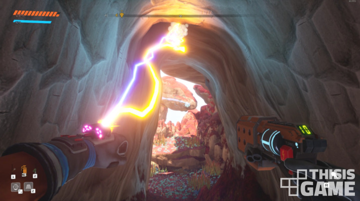 자원을 채집하고, 채집한 자원을 통해 각종 탐사 장비를 업그레이드 할 수 있다는 점을 보면 <서브노티카>가 떠오를 수 있다. 다만, <저니 투 더 새비지 플래닛>은 <서브노티카>만큼 하드코어 하진 않다. 갈증이나 배고픔 수치와 같은 생존을 위한 요소는 존재하지 않기 때문이다. 집을 짓는 크래프팅 요소도 없다. 장비 업그레이드를 위한 자원도 맵을 탐사하거나, 외계 생물체를 처치하면 손쉽게 모을 수 있다.