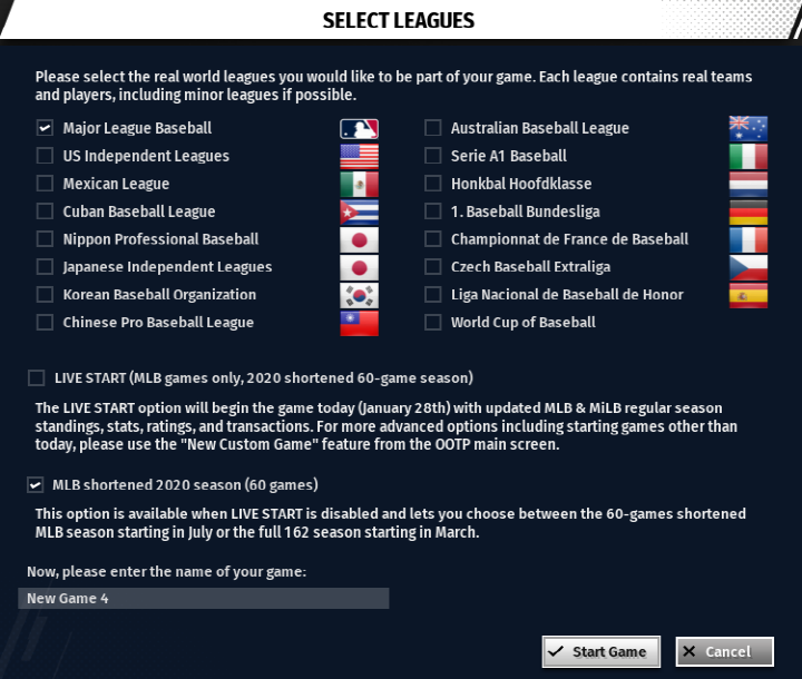이에 더해 <OOTP 21>에서는 프로 리그뿐 아니라 국가대표팀 감독을 맡을 수도 있습니다.