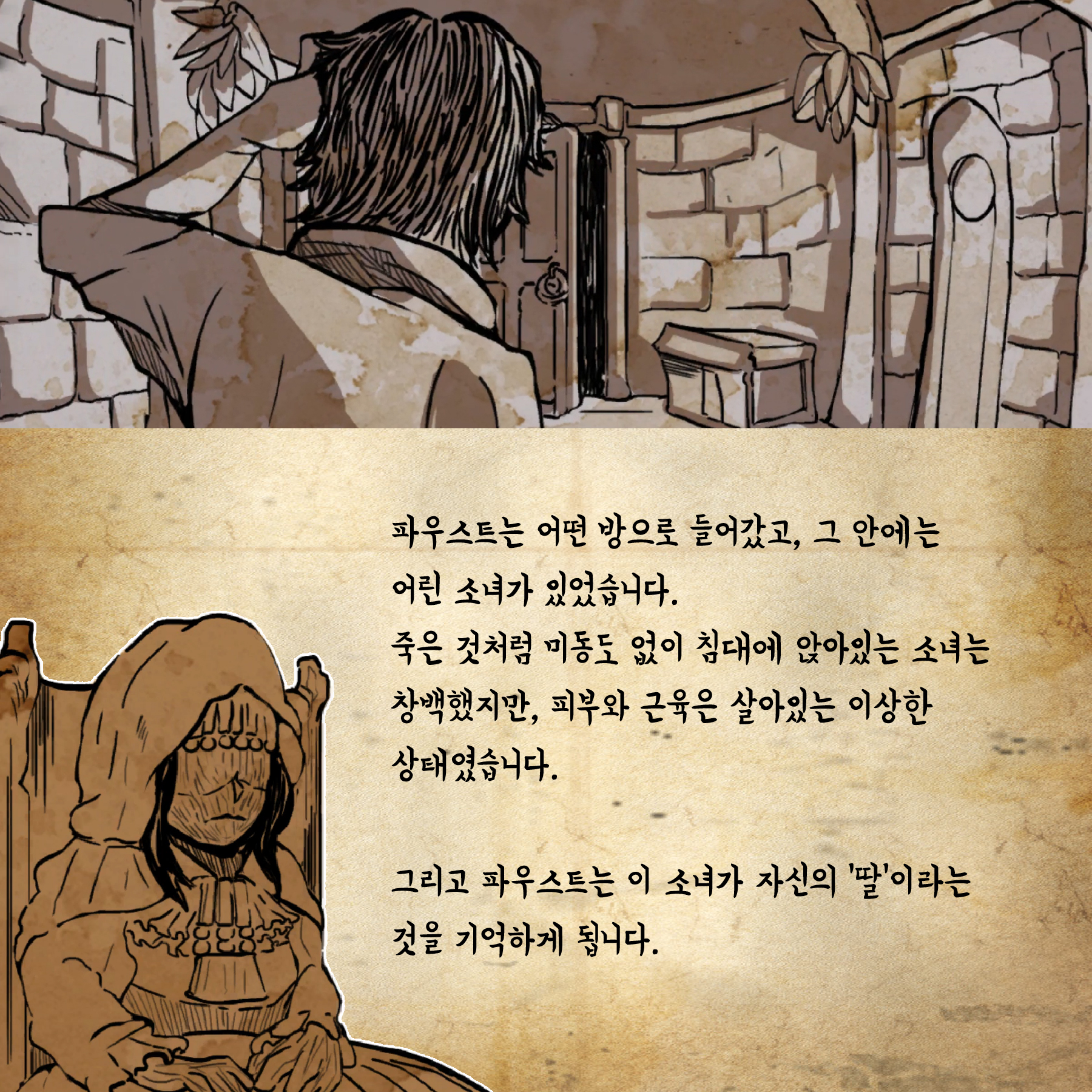 게임 안에 개발자의 아픈 기억과 어린 시절을 꾹꾹 넣어놓은 거 같아 플레이하면서 '무섭다'라는 감정보다는 게임 안의 호문쿨루스의 감정에 이입되었습니다.