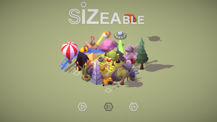 게임명 'Sizeable'에서 연상할 수 있는 것처럼, 게임 내 대부분의 개체는 마우스 휠로 크기를 자유롭게 조절할 수 있습니다. 그렇다고, 단순하게 크기만 조절하는 게임은 아닙니다. 크기를 조절함에 따라 맵의 개체들이 상호작용을 하기 때문이죠.