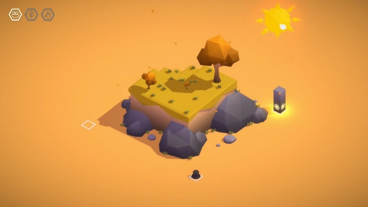 이러한 상호작용은 맵의 퍼즐을 풀 수 있는 단서가 됩니다. 달부터 태양, 집, 나무, 행성 등... 게임 내 모든 개체는 크기가 줄거나 커짐에 따라 서로 다른 상호작용을 합니다. 예를 들어, 달을 작게 만들면 맵의 해수면 높이가 낮아져 바다 안의 무언가를 발견할 수 있고 태양을 크게 만들면 나무와 잔디가 울창한 여름이, 반대로 작게 할수록 가을에서 겨울로 기후가 바뀌는 연출을 보여주기도 합니다. 다시 강조하지만, 변하는 연출은 곧 퍼즐을 푸는 '단서'입니다.