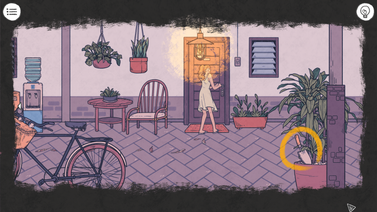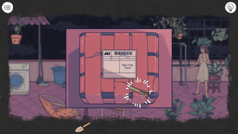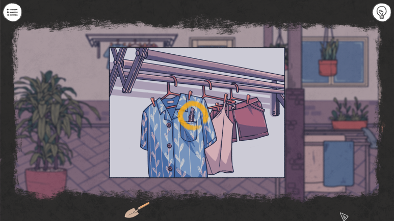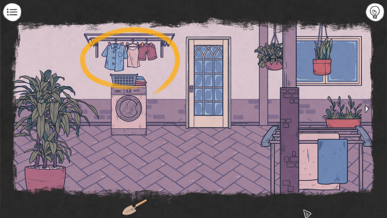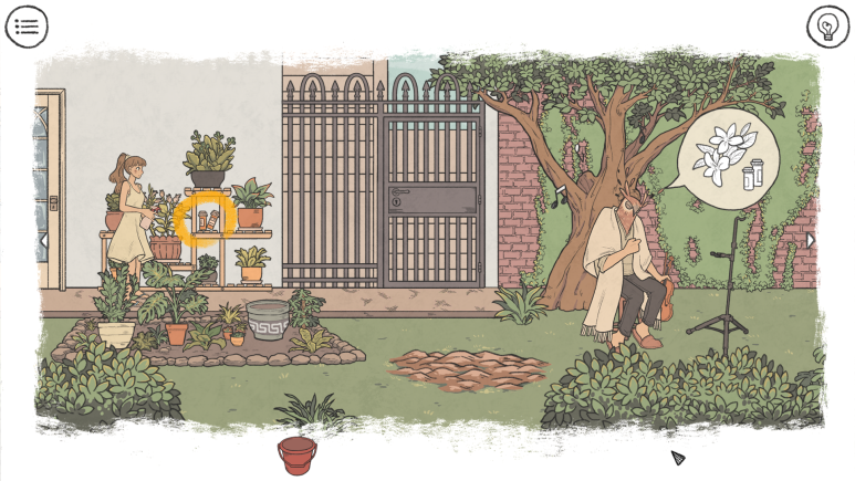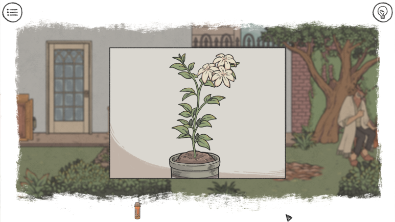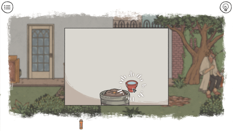 이제 정원으로 넘어와서 모종삽으로 흙 속을 파내 줘.