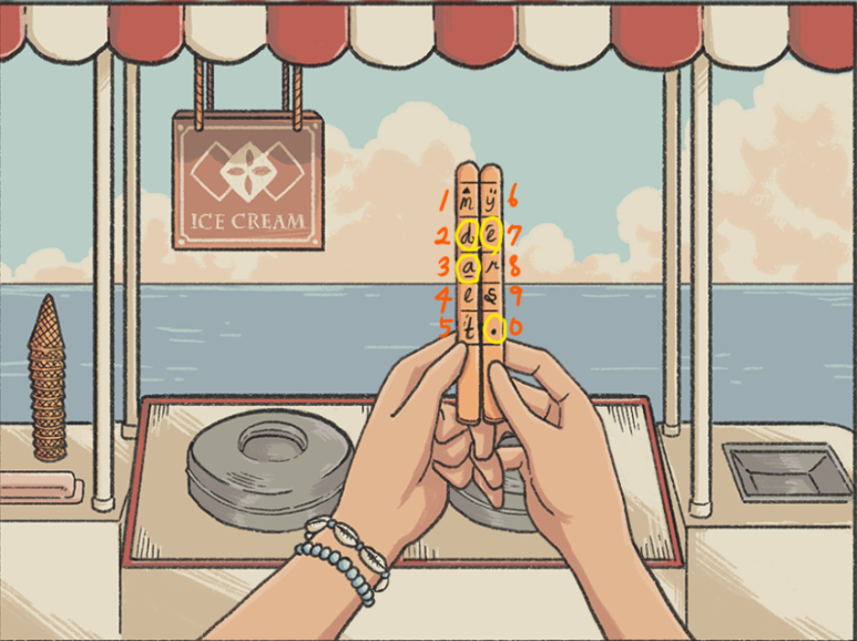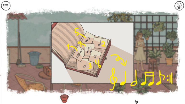 다이어리 안에서 숫자가 적힌 사진들을 순서대로 뒤집으면 음표가 나오는데
