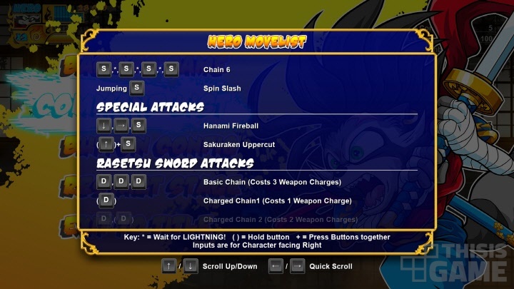 체험 가능한 2종의 캐릭터는 외형이나 소**이 검과 수리검을 사용하는 근/원거리 캐릭터로 설정되어 있다. 히로 야마기와는 외모가 <사무라이 쇼다운>의 갈포드가 생각나기도 한다. 앞서 밝혔듯 과거 경험한 여러 게임의 흔적을 발견하는 재미도 있다.