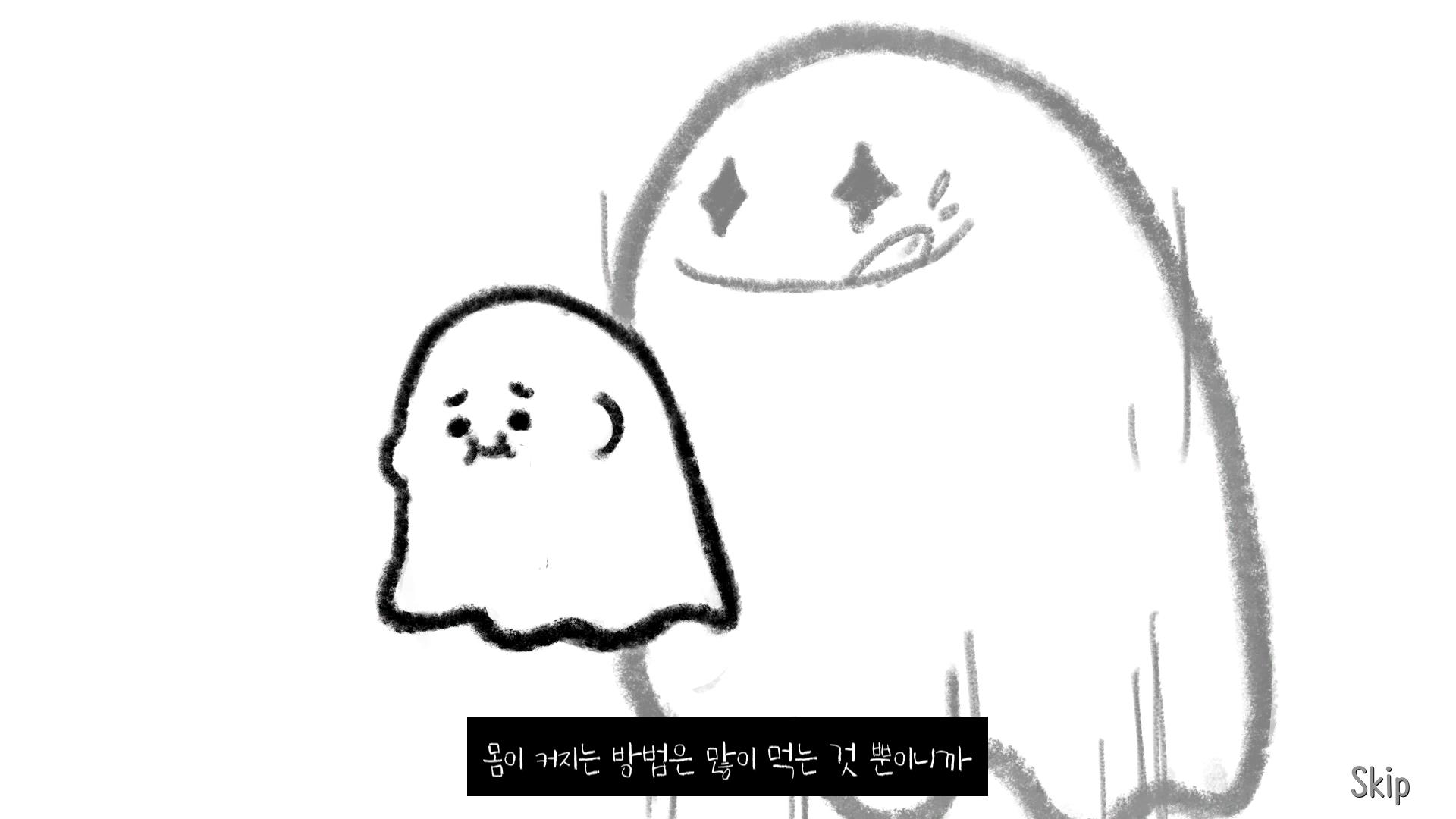 <과일을 먹으면 Boo에게 꼬리가 생깁니다.>
