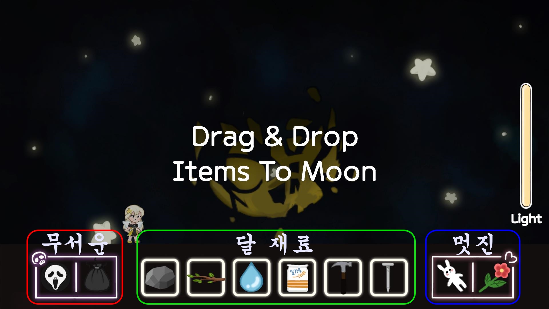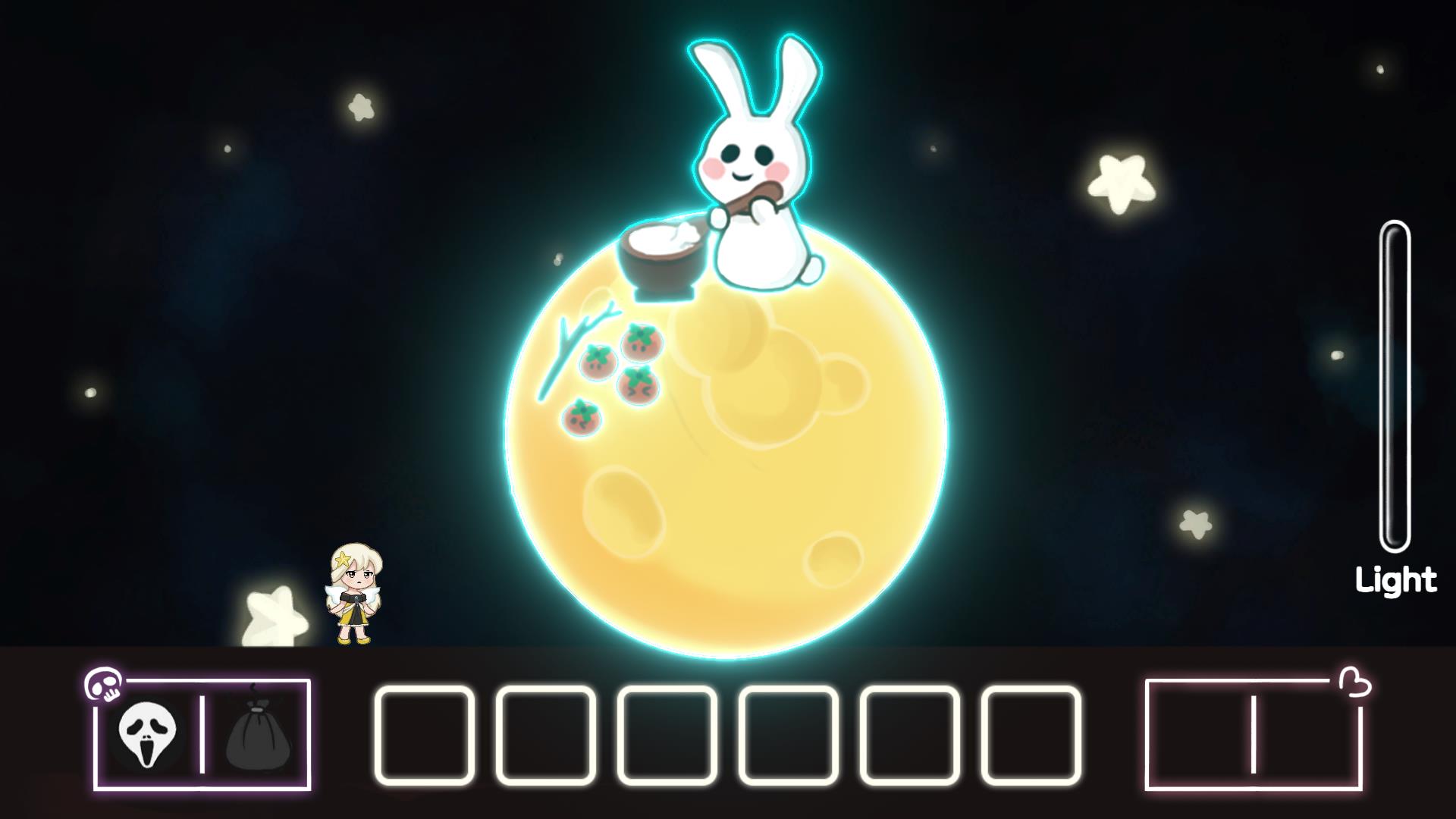 신월 대보름은 달이 사라진 세계에서 새로운 달을 만든다는 이야기의 게임입니다. 별빛과 새로운 달의 재료를 모아서 새로운 달을 만든다는 단순한 구성이지만, 그만큼 적응이 쉽고 다섯 종류의 달을 만들 수 있다는 점이 재미있습니다.