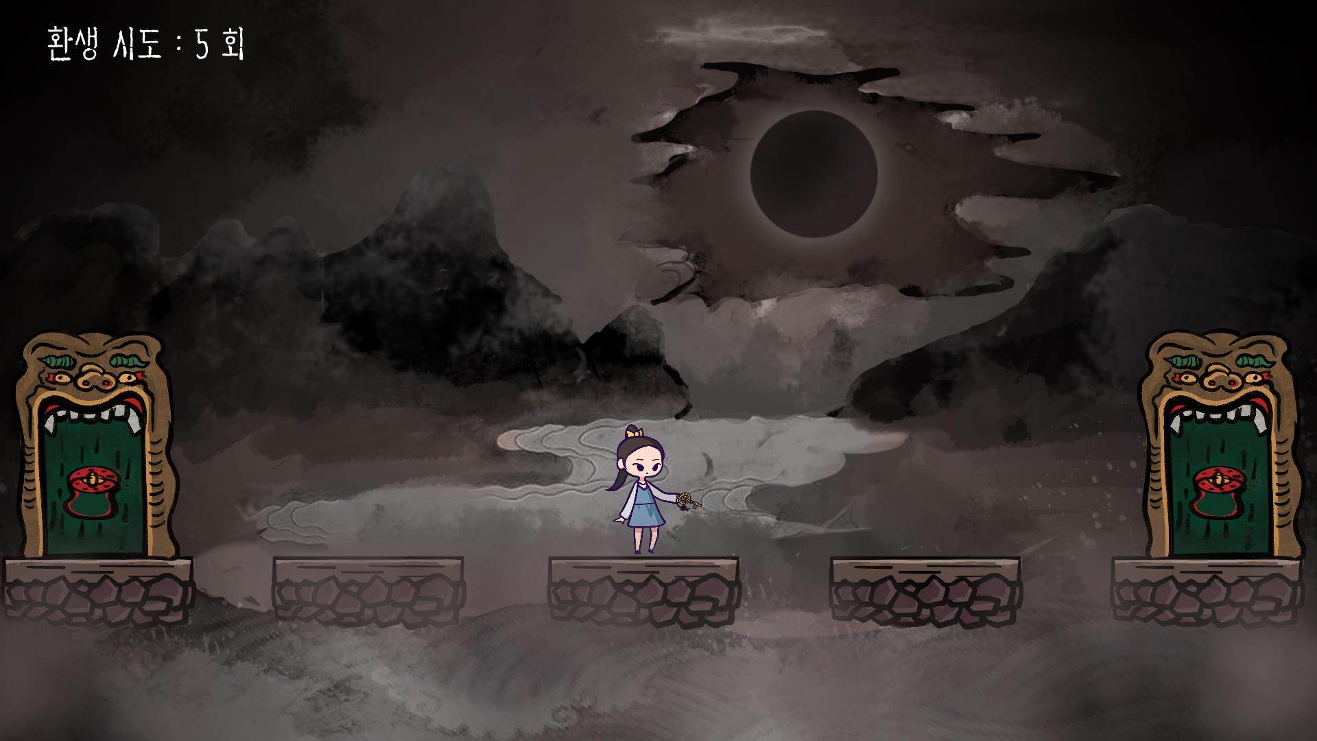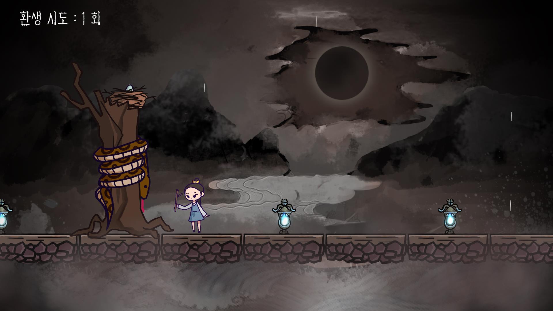 환생 뎐은 게임잼 EP.2에서 가장 많은 추천 수를 받은 게임입니다. 죽은 주인공이 환생하기 위해서 환생의 문을 찾는 과정을 그리고 있습니다. 총 다섯 가지의 관문이 있고 이 관문을 모두 통과하면 환생하게 됩니다.