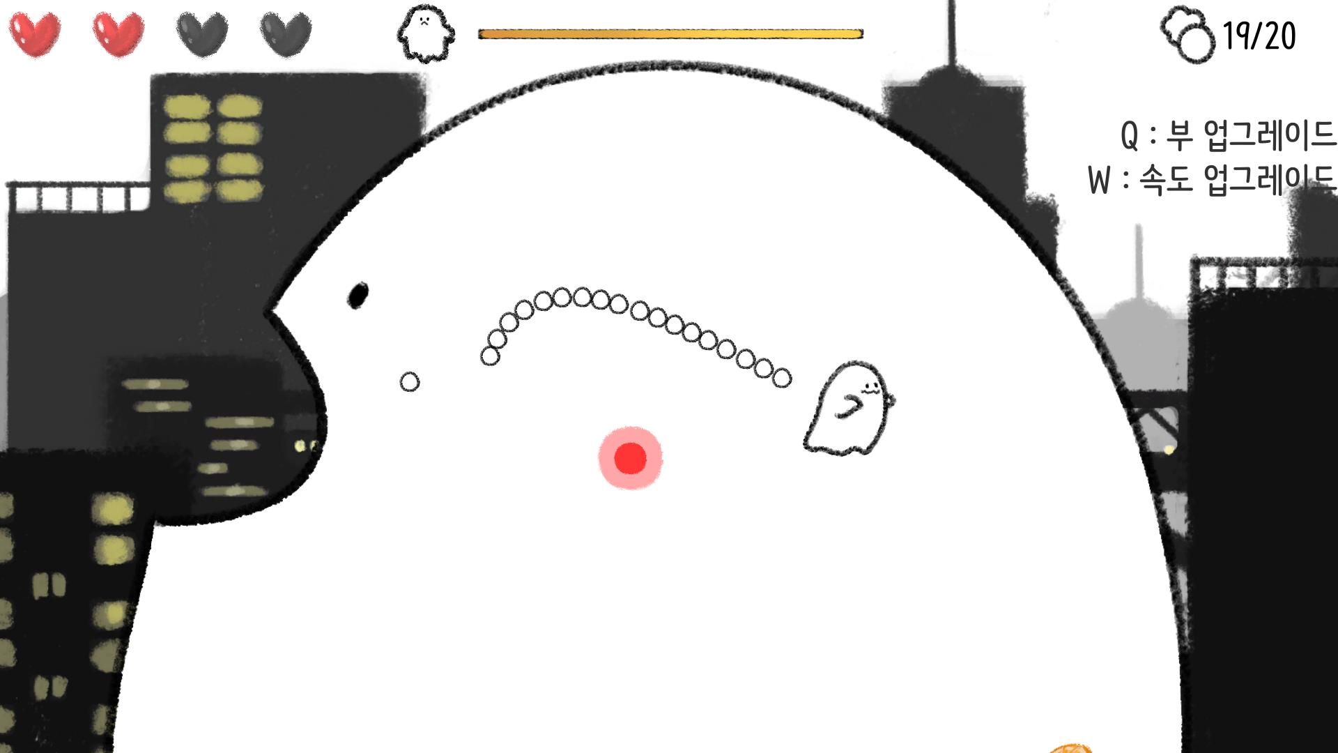 그러나 이 게임은 Boo가 모은 꼬리를 소모해서 Boo의 크기를 키우거나 또는 Boo의 속도를 올릴 수 있습니다. 이를 반복하면서 Boo를 거대한 유령으로 성장 시키면 됩니다.