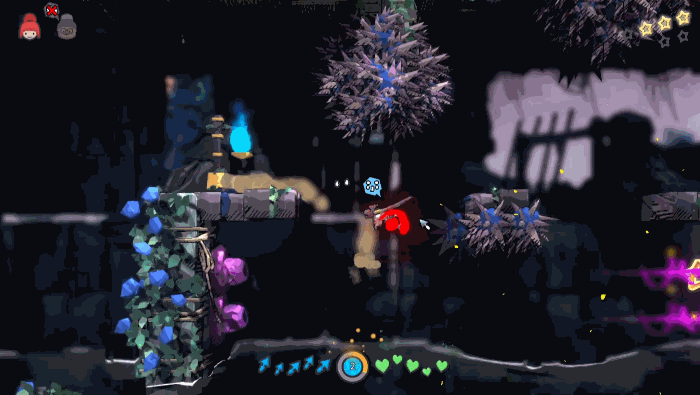 캐릭터는 초반에 단순한 점프와 활 공격밖에 못하지만 공중 구르기, 로프 달린 화살을 벽에 꽃아 이동, 기를 모은 강력한 화살 발사 등 탐험하며 얻은 새로운 능력으로 점차 더 기괴해지는 슬라임을 격파해나가며 앞으로 나아간다.