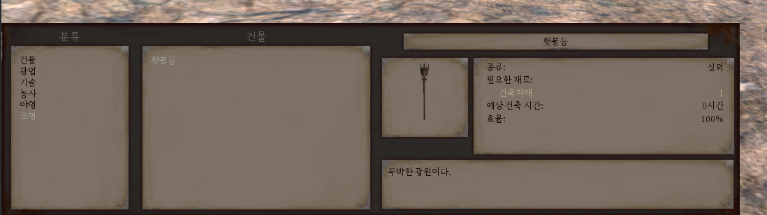 구리 캐는 곳에 횟불이나 캠프 파이어를 지어서 시야확보하려는데 아래 그림처럼 빌드에 서바이벌 밖에 없네요ㅠㅠ