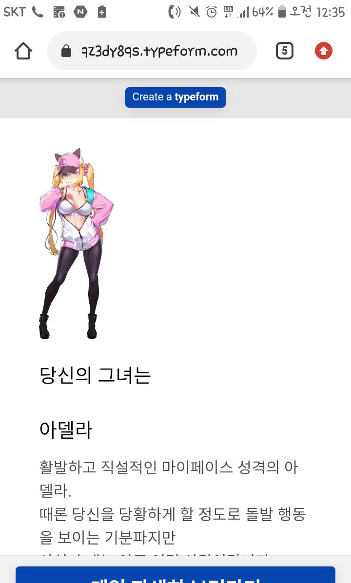 게임속 나의 여친 테스트를 했는데 아델라가 나왔습니다