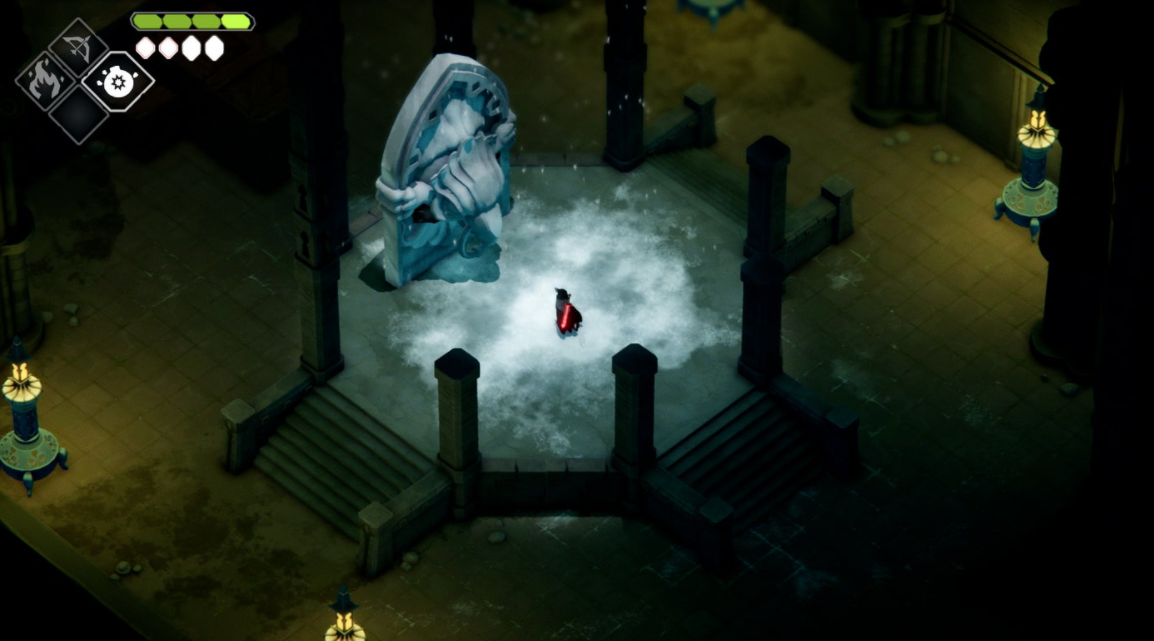 그리고 거의 모든 지역에 비밀 통로를 만들어놓은 덕분에, 게임의 미스터리는 차고 넘치는 수준이다. 탐험을 하면서 찾을 수 있는 보상은 수집 가능한 보석, 체력 또는 마법의 성지 정도로 많지 않지만, 그럼에도 탐험을 자극하는 매력이 있다보니 언제나 주요 경로에서 이탈하여 옆에 있는 사다리가 어디로 통하는지 확인해보게 되고, 닿을 수 없는 절벽 위에 있는 체력 업그레이드까지 어떻게 도달하는지 고민하게 되었다. 가끔은 잠긴 문을 열기 위해 마법 도구 업그레이드가 필요했는데 이런 비밀은 잠시 기억해두었다가 다시 돌아와야 했다 (근본적인 젤다의 요소다). 플레이어가 가지는 궁금증은 모두 이런 비밀 요소들에 의해 보상을 받게 되고, 정적인 카메라 이동이 언제나 비밀 가까이에 있을 때는 살짝 이동하여 내가 획득할 수 있는 보상을 보여줬다는 점도 게임 내내 마음에 들었던 부분이다.