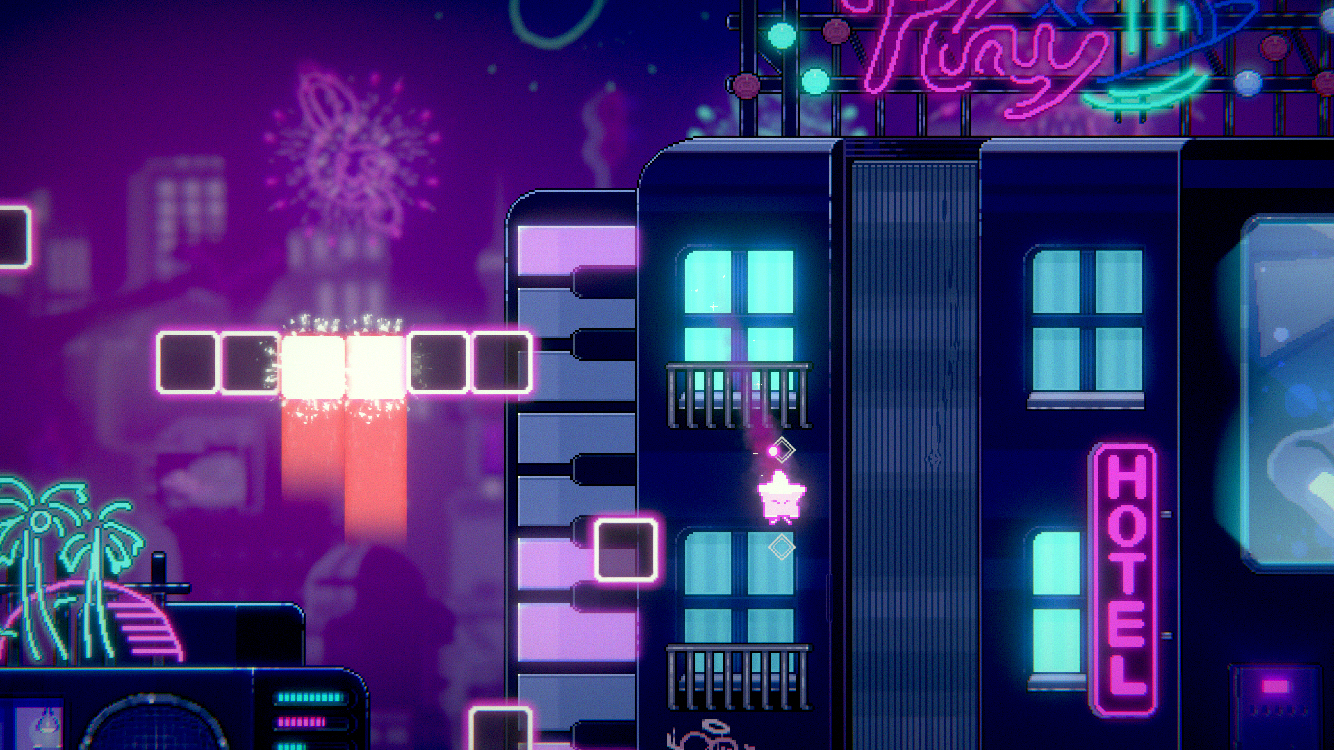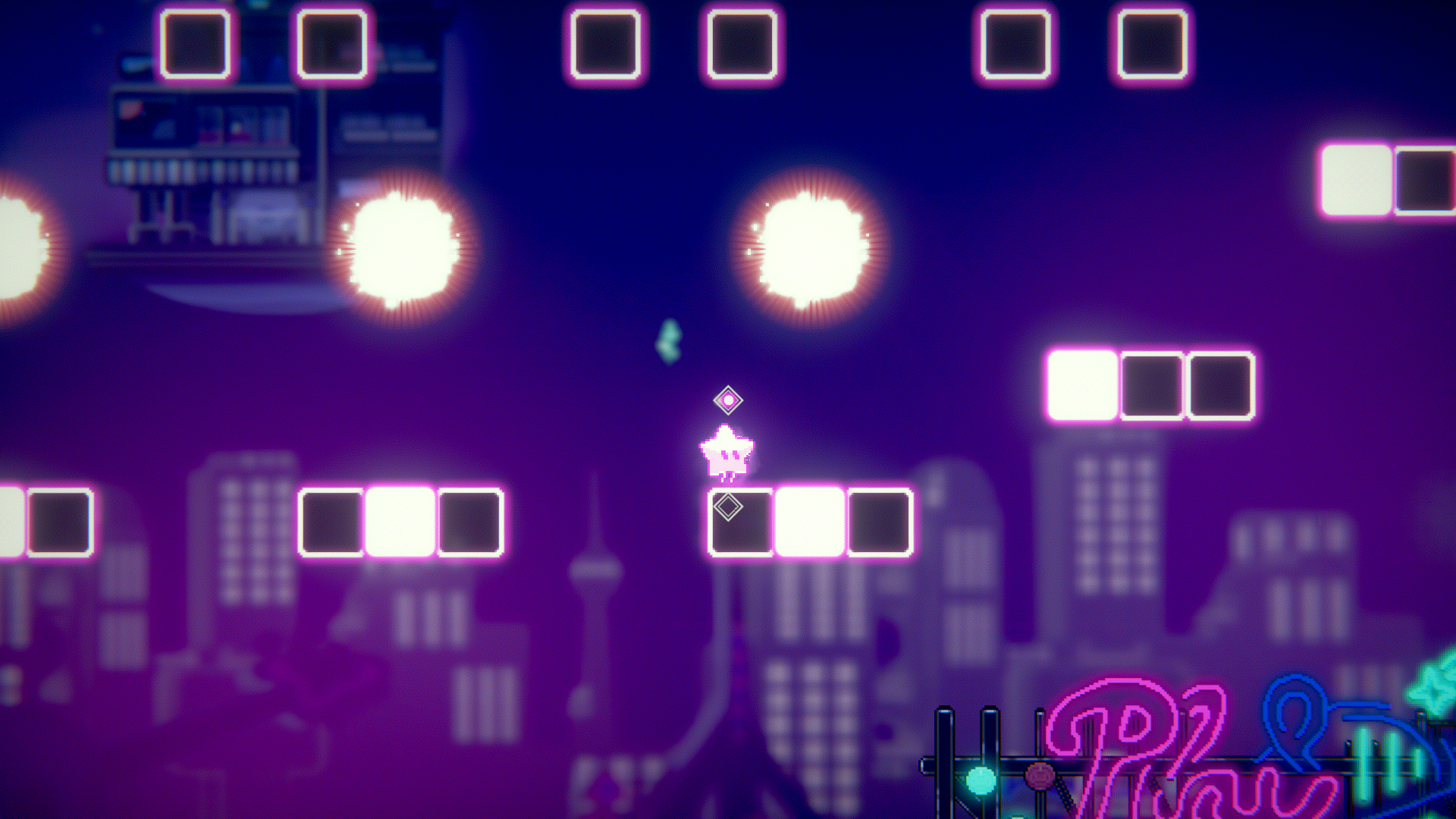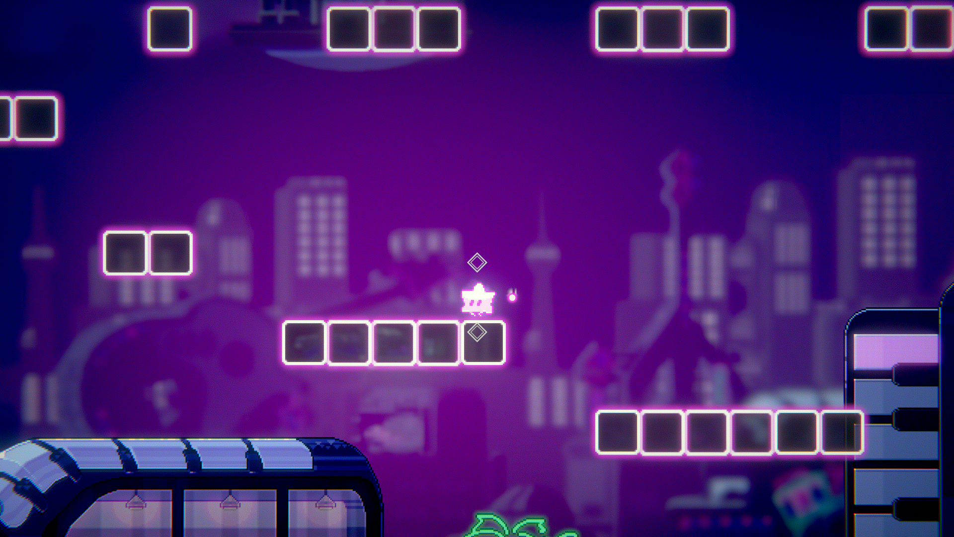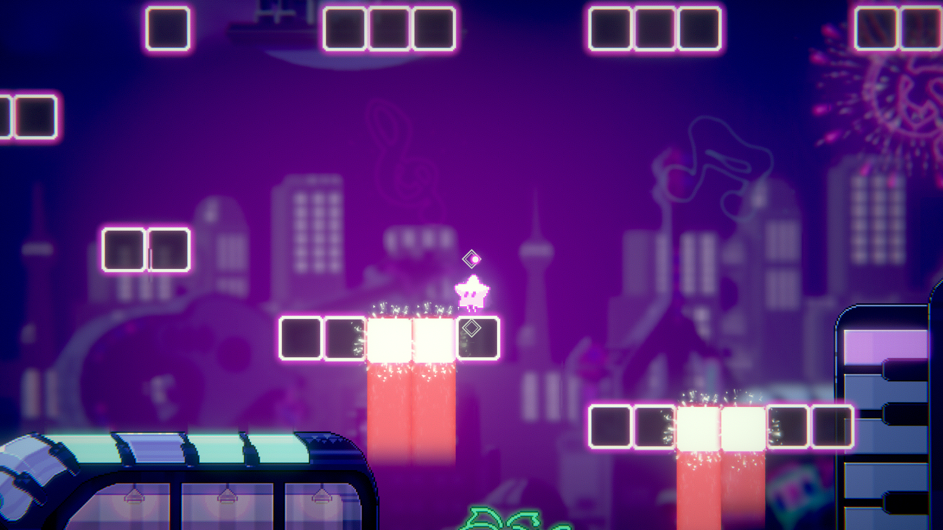 이렇게 발판이 사라지기도 하고, 리듬에 맞춰 높게 점프하면 안되는 장애물도 존재해요~