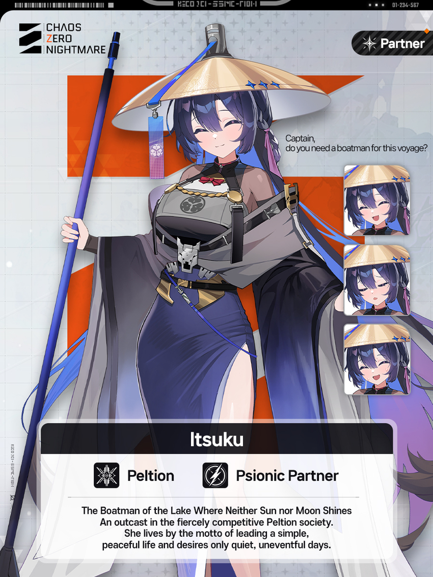 Introducing the Psionic Partner, 「Itsuku」, an exile from the fiercely competitive Peltion society.