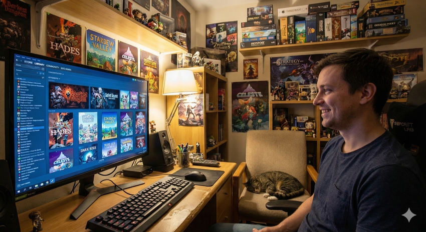 Give it a CSV file and say, "Based on the characteristics of this game library, imagine the owner's appearance and create a photo."