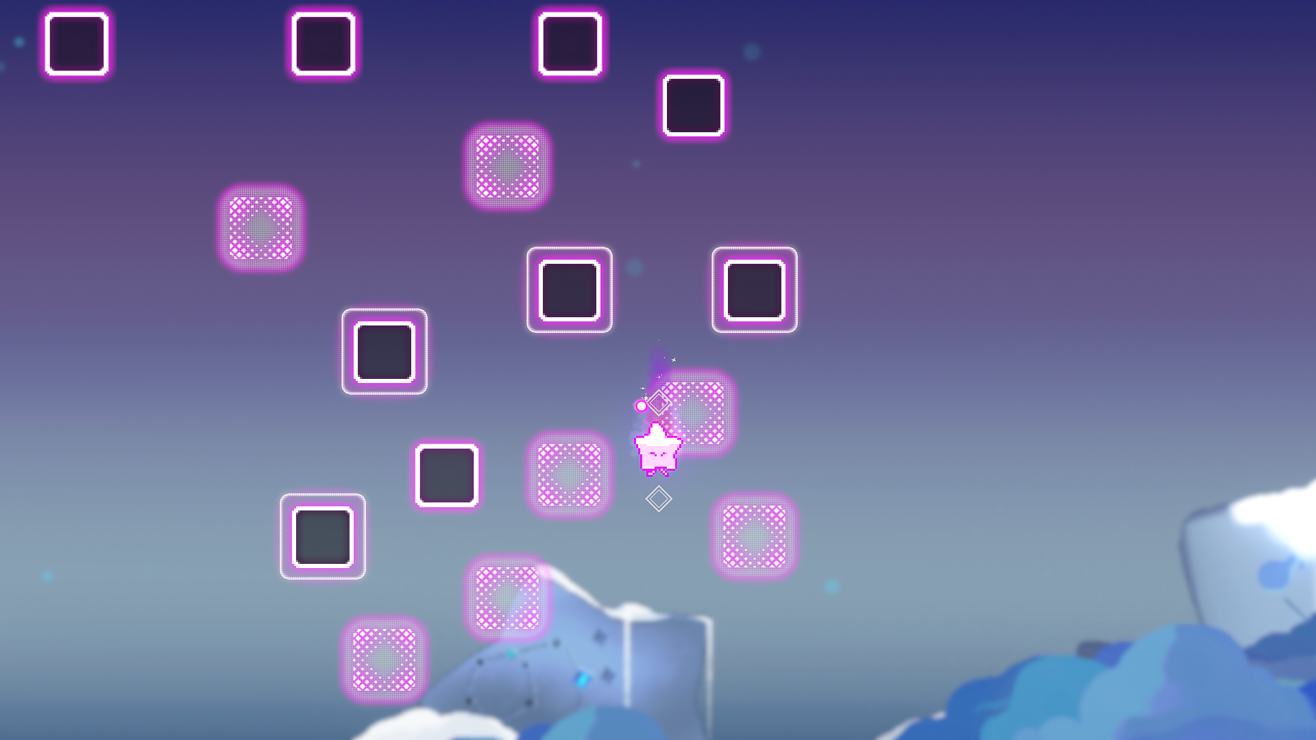 초반에는 간단한 조작법과 리듬에 맞춰 점프하는 시스템으로 꽤 재밌게 플레이했는데 3스테이지 이후로 난이도가 이차함수마냥 올라가서 별 스테이지는 포기하고 껐습니다.. BGM을 들으며 박자를 맞춰 점프해야 하는 점에서 되게 신선했으나 특정? 스테이지에서 노래가 끝나는 타이밍이 정박이 아니라 점프 타이밍이 한번 꼬인다는 점이 불편했고 별 스테이지에서는 노래가 살짝 깨지는 느낌이 든게 좀 아쉬웠습니다. 이어하기가 있는데 여기서 새로하기를 잘못 누르면 바로 새로시작되서 세이브가 없어진다는 게 좀 그렇네요. 새로하기 누르면 확인창을 한번 띄워줬으면 합니다.