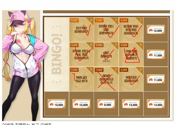 빙고판에 8번째칸에 있는 데모게임플레이하고 후기쓰기