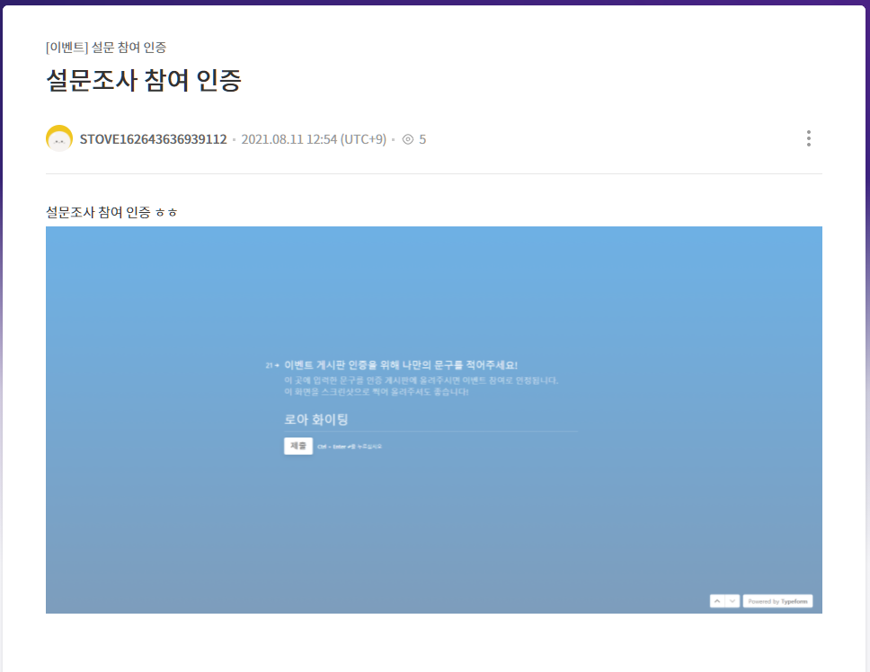 이거설문 참여 첫번째하고 어떻기 인증할줄몰라서 2번째할때 스샷한건데 이게왜 빠진거지 ;