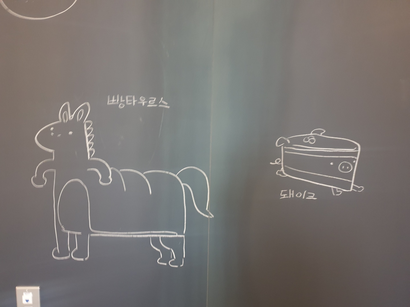 신기한 점은 벽을 칠판으로 대신할 수 있어 벽에 마음대로 그림을 그릴 수 있어요!