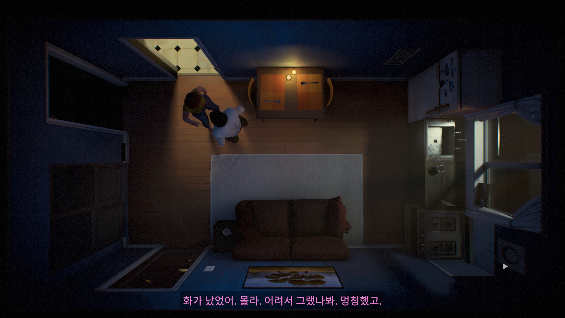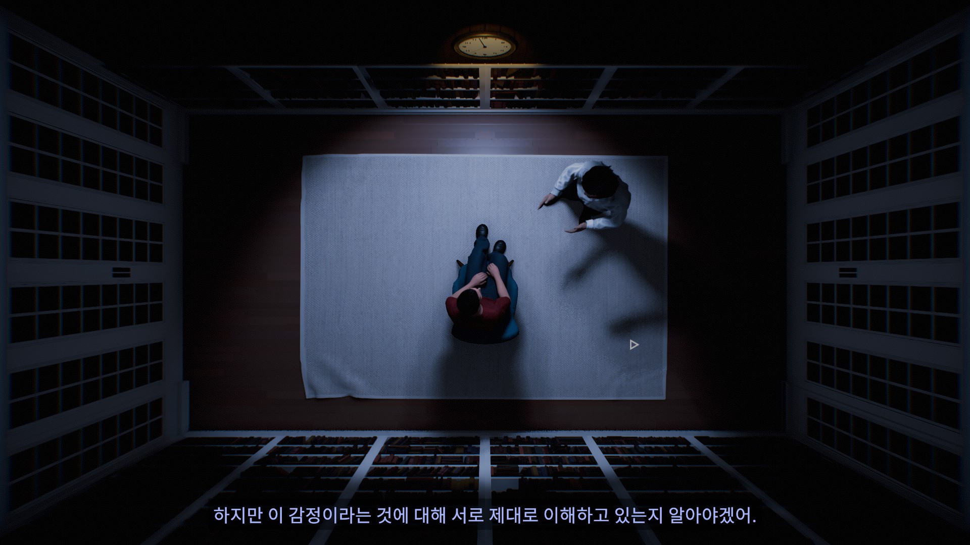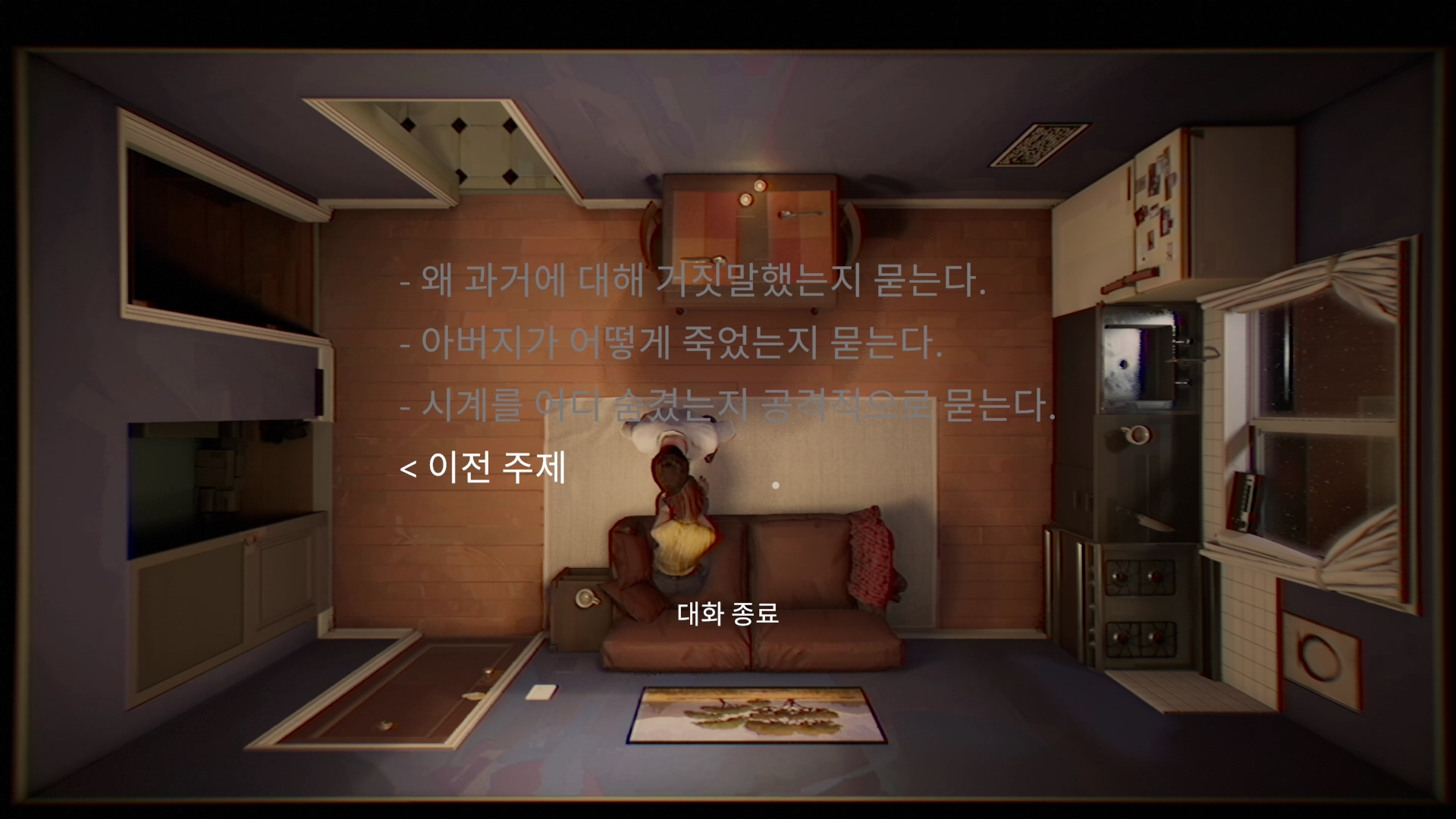 게다가 더 큰 문제는 플레이어의 선택과 판단이 맞는지 틀렸는지 혹은 게임이 올바른 방향으로 전개되고 있는지에 대해 플레이어가 인지할 수 있는 수단이 전혀 없다는 점에 있다. 바른 행동을 취하거나 알맞은 선택지를 골라도 행동에 대한 결과가 바로 반영되지도 않고 아내와 경찰의 반응 또한 미적지근해 행동이나 선택지에 대한 결과를 명확히 인지하기가 어렵다. 이따금씩 아내와 경찰과의 대화 상황에서 중요한 정보가 드러나곤 하지만 앞서 언급했던 것처럼 모든 오브젝트가 여기저기 뿔뿔히 흩어져있고 모든 단서가 파편화돼있어 획득한 정보를 어떤 식으로 활용해야할 지 추측하는 것 또한 까다롭다. 그렇다고 게임이 자체적으로 게임의 진척도를 알려주는 기능을 탑재해둔 것도 아니다. 따라서 플레이어의 입장에서는 게임 내내 마땅한 활로를 찾지 못해 모든 가능성을 열어둔 채 끊임 없이 헤매야만 한다. 마치 한 자루 지팡이에만 의지한 채 짙은 안개로 가득한 사막을 헤매는 것처럼 말이다.