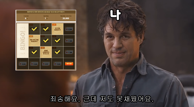 전 한줄 딱 채웠네요 게임 추천해돌라고 해서 일단 게임 추천 글부터 만들고 채우려고 했는데 그새 종료 되었 되더군요