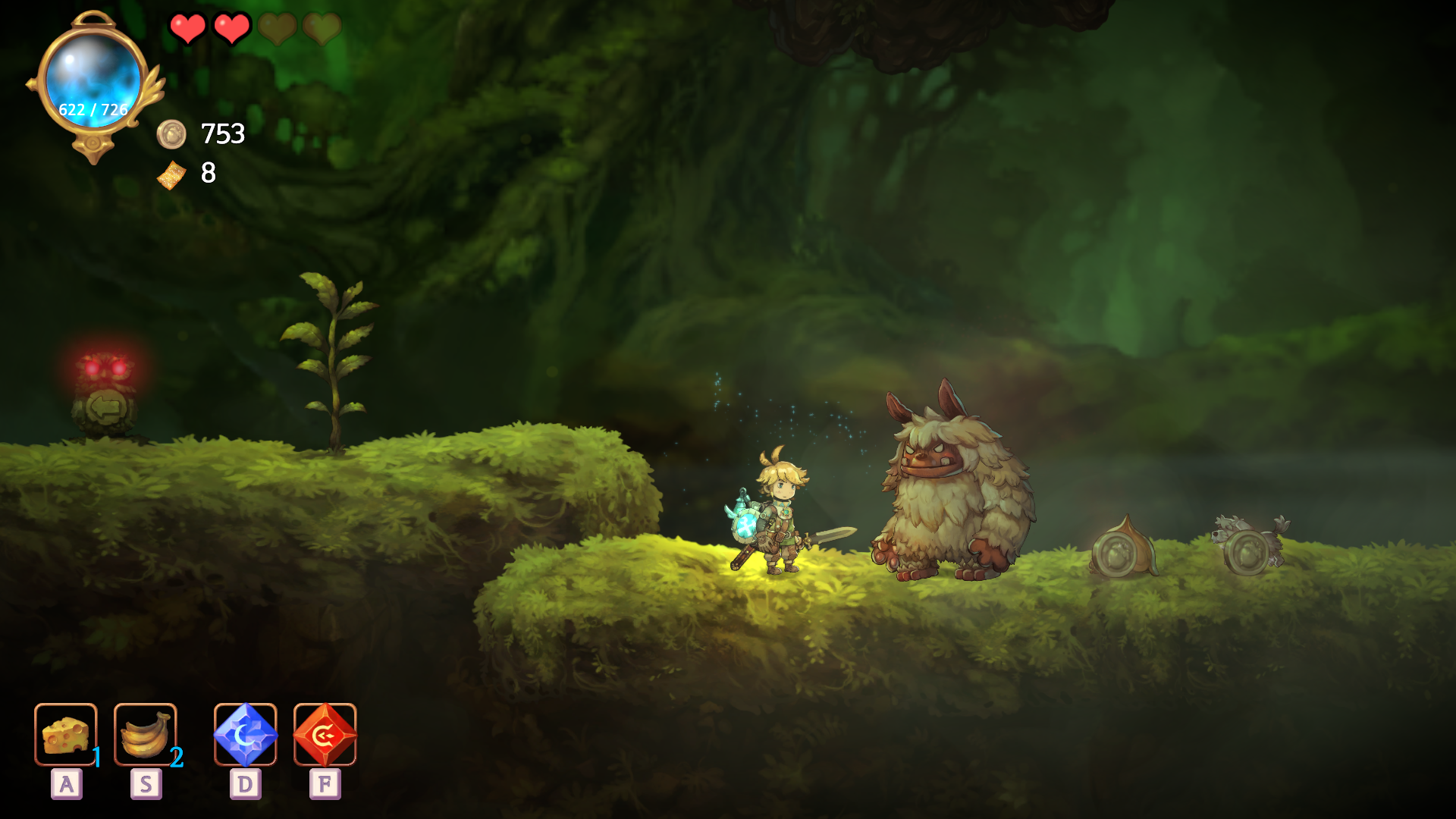 게다가 대부분의 적들의 공격이 빠르고 예측이 힘들기 때문에 가장 편하게 플레이하는 방법은 맞으면서 싸우는 것입니다. 그러니 계속해서 회복 아이템을 먹으면서 진행하면서 회복 아이템 부족에 시달리게 됩니다.