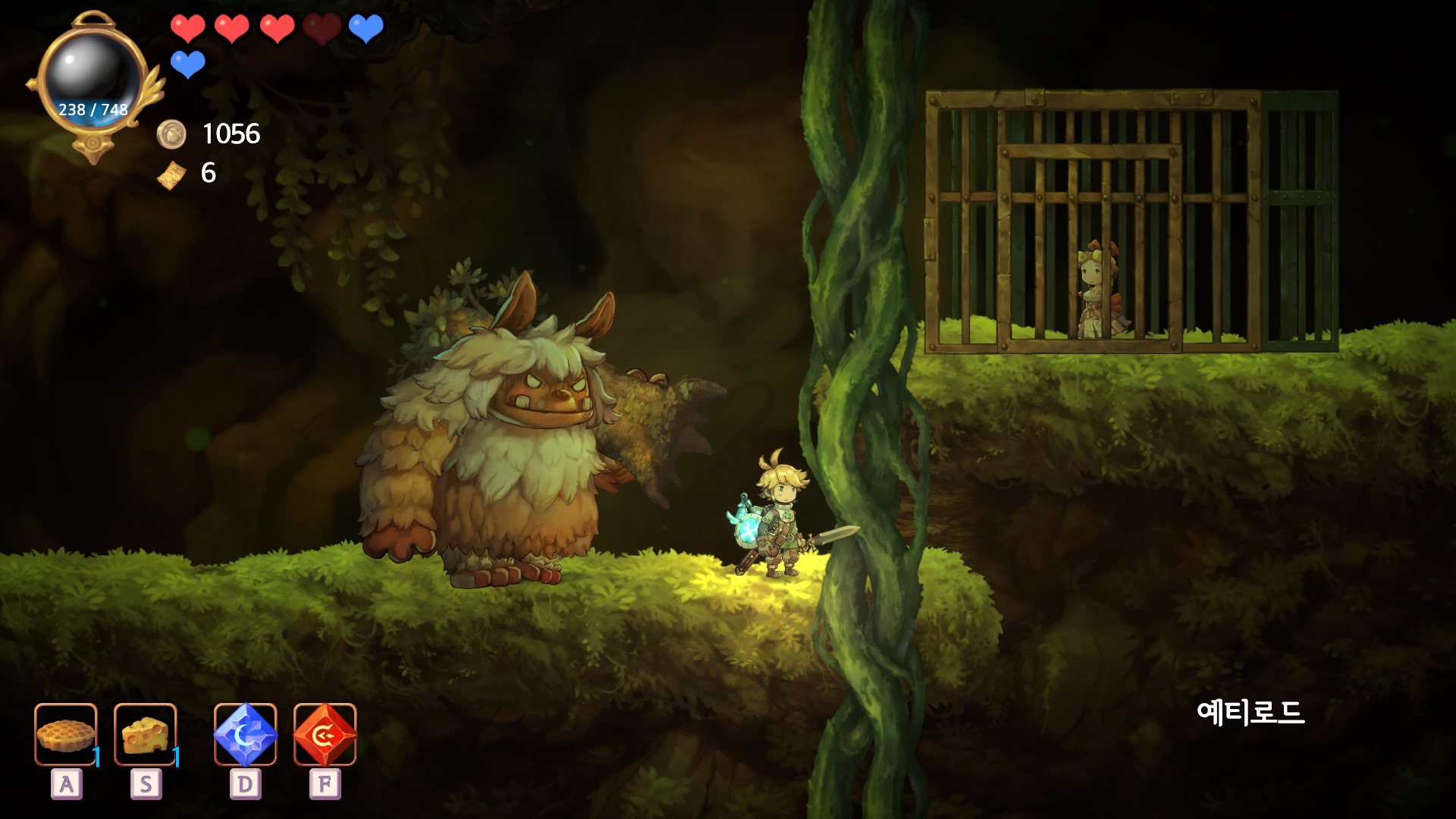 중간 보스로 등장하는 예티 로드의 경우 예티와 동일한 행동 패턴을 가지고 있고 그냥 체력이 더 많을 뿐입니다. 그래서 예티 보다 더 많이 맞으면서 싸우는 수밖에 없습니다.