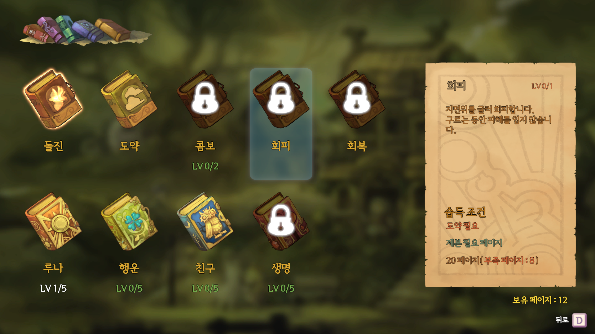 <페이지를 모아서 능력을 올려야 합니다.>