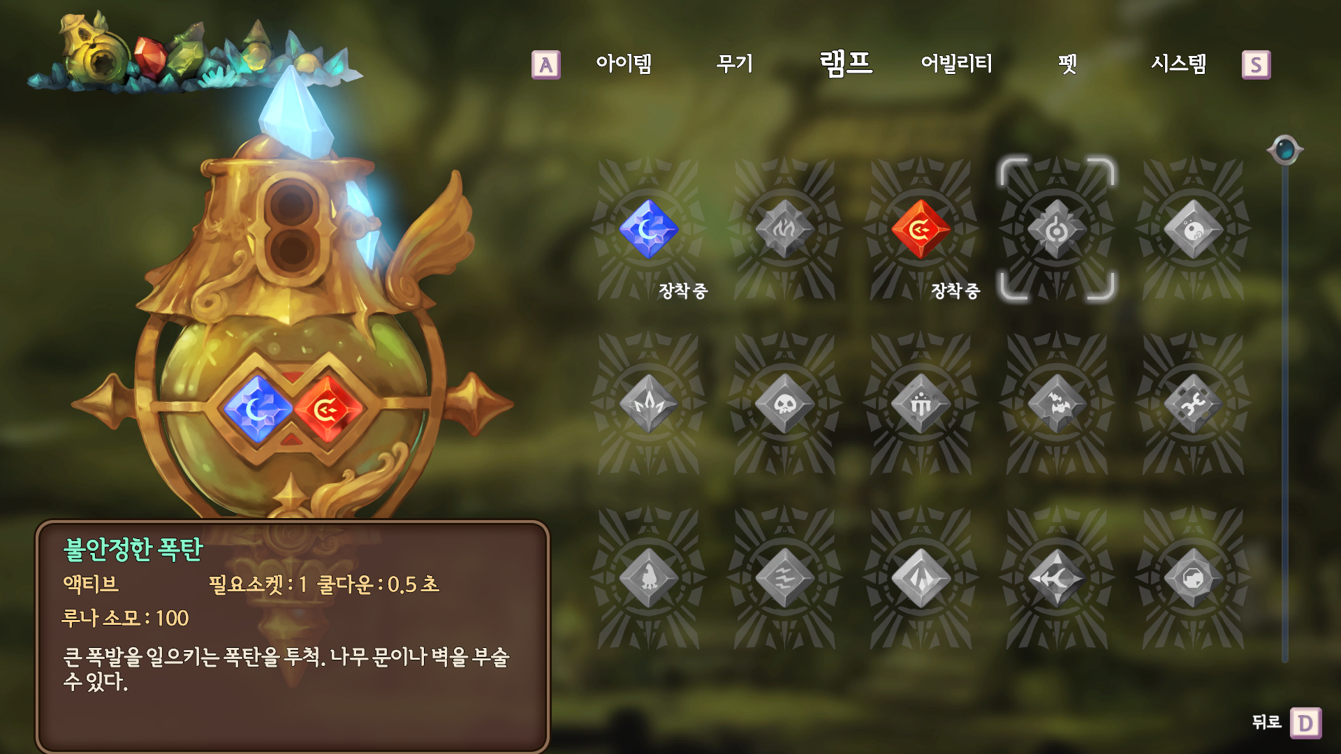 <램프의 특수 능력을 모으고>