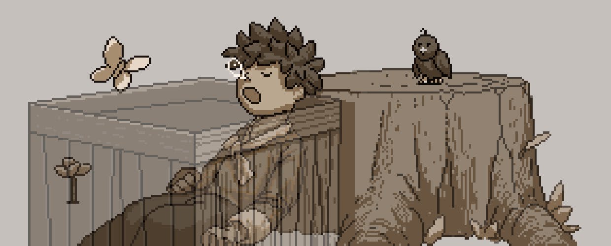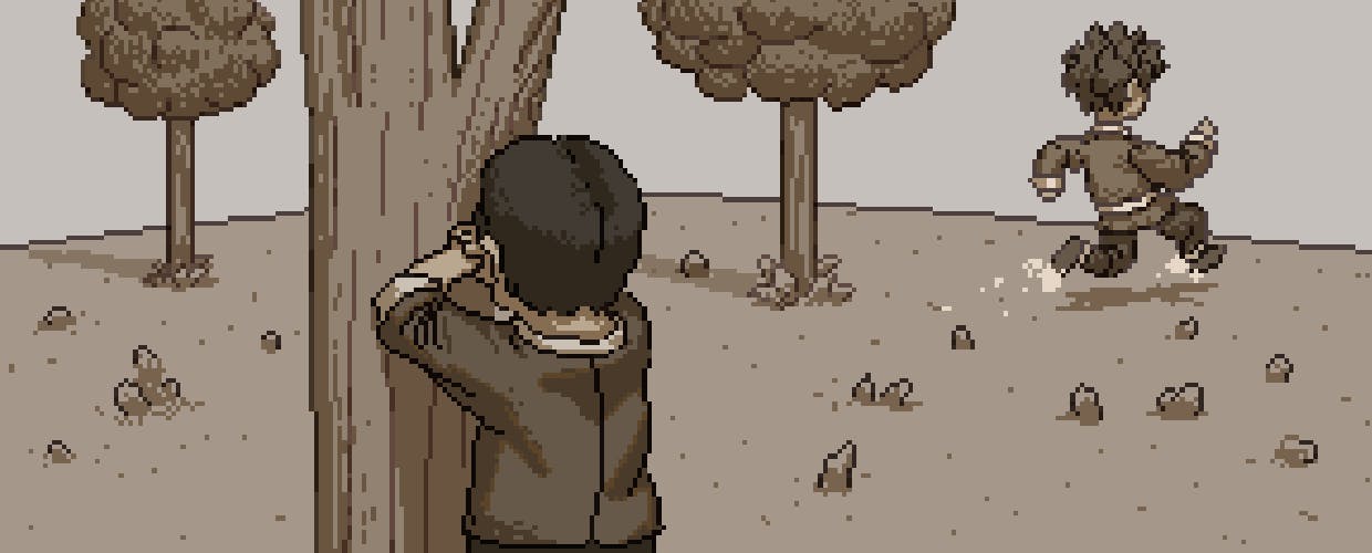 숨을 곳을 찾던 도중 숲 속에서 숨기 딱 좋은 나무상자를 발견 했어요.