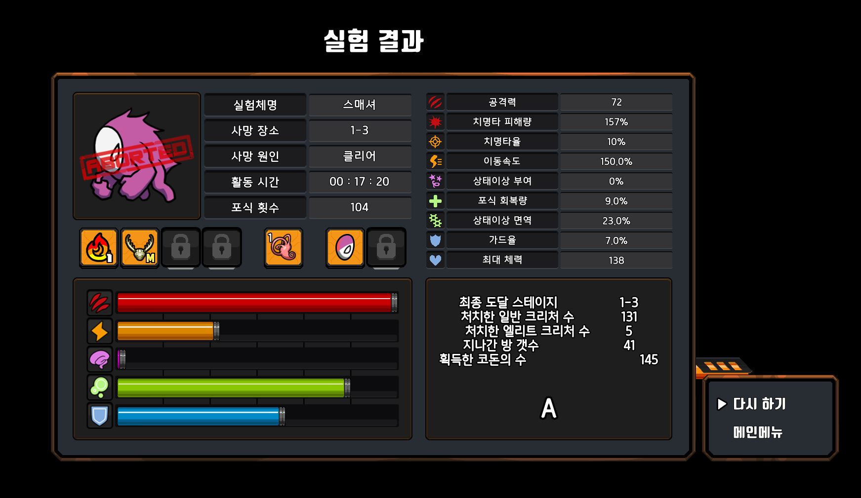 로그라이크류 답게 플레이 하는 맛이 있었습니다.
