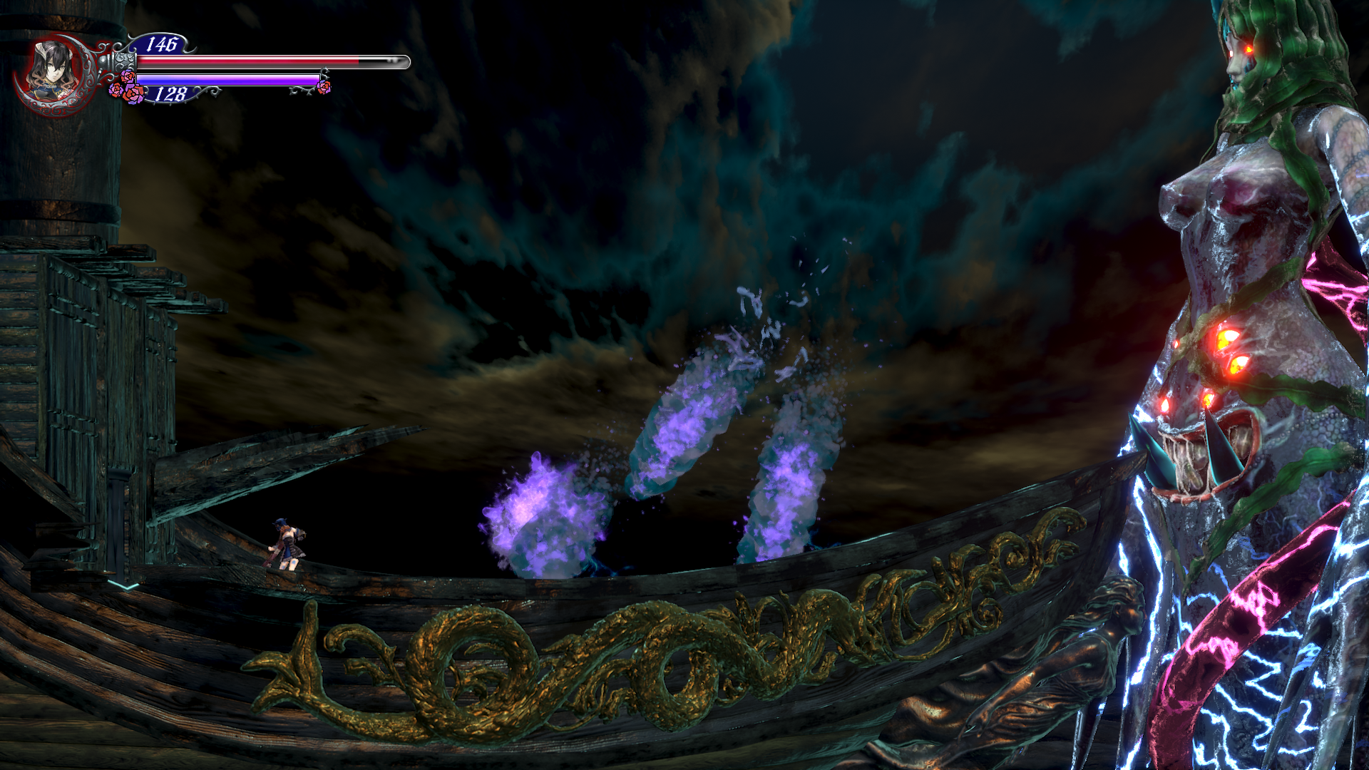 배 끝에서 공격할 때 다가가면 보스를 공격할 수 있으나 방심한 틈에 나오는 촉수나 뒤에서 습격해 오는 부하들의 공격에 상당히 취약 해집니다.