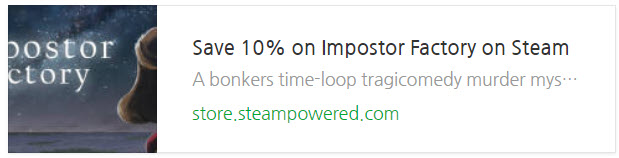 감동과 눈물 부족 사태에 시달리고 있다면, 이 가을 이 작품 '임포스터 팩토리'를 플레이 해 보시는 건 어떠시겠어요?