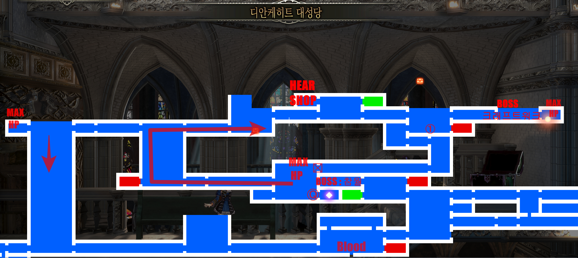 <지도는 피 분수 부터 입니다. 이미지를 클릭하면 공략으로 넘어갑니다.>