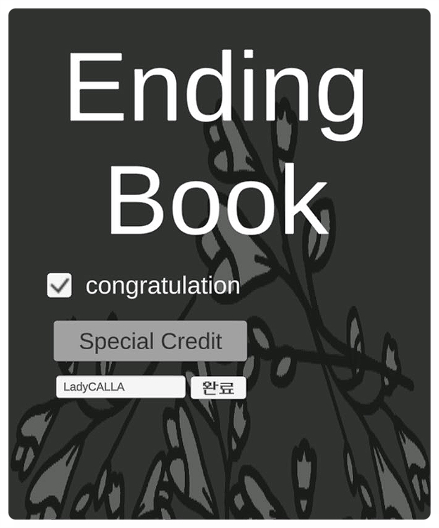 'Do 11'의 6개의 엔딩을 모두 수집하고 나니 비활성 상태였던 congratulation 의 체크 박스를 선택할 수 있었고, 이후 Special Credit 하단에 자신의 닉네임을 입력할 수 있는 화면이 나타났다.