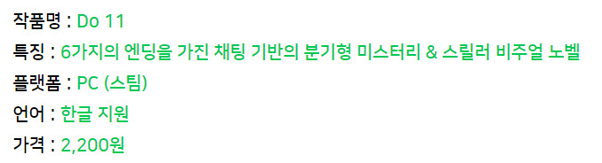 Do 11은 올해 8월 10일에 스팀을 통해서 정식 런칭한 작품으로 시놉시스가 흥미로워서 작품이 발매된 날 바로 구매를 하긴 했지만, 작품 자체에 대한 기대치는 높지 않았던 탓에 두 달 가까이 플레이가 미뤄져 버렸다.