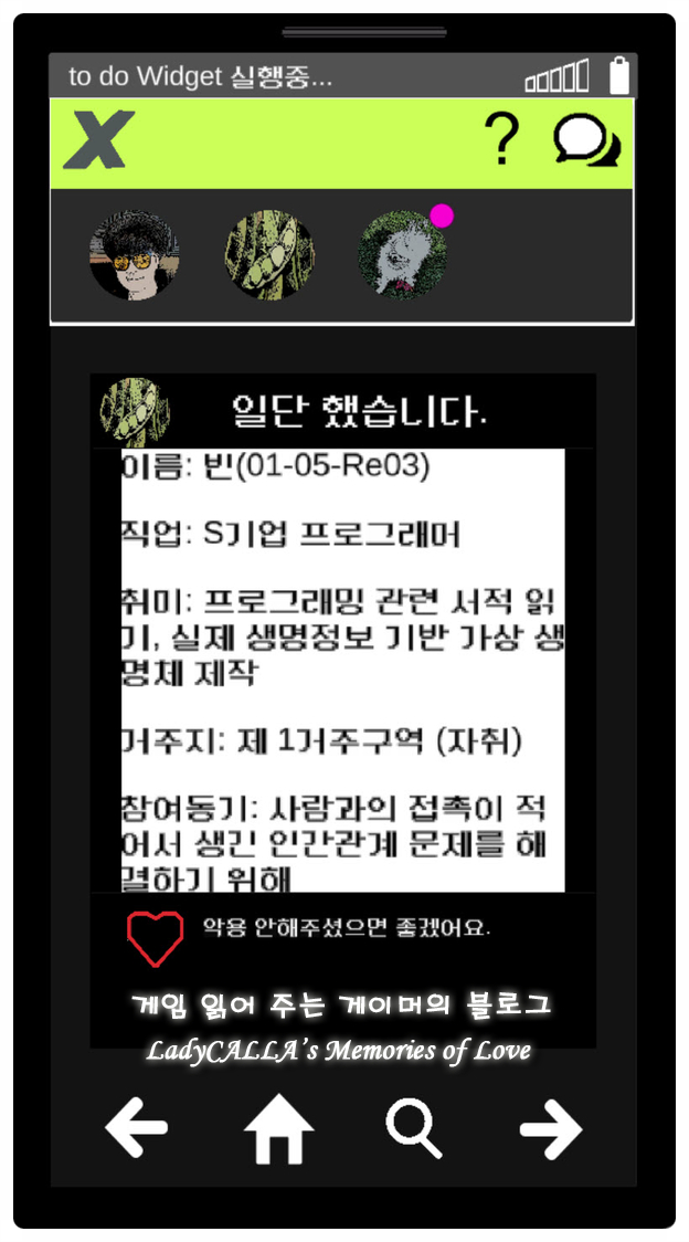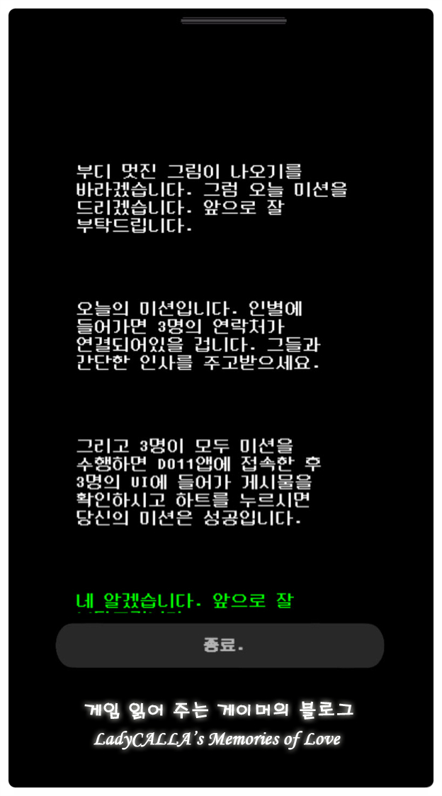 친구의 추천으로 설치하게 된 의문스러운 어플이긴 했지만 사람들과 소통하는 재미도 있고, 서로 다른 사람들의 일상을 살펴 보는 재미도 있어서 DO 11에 조금씩 적응하고 만족감을 느껴가기 시작하던 어느 날,