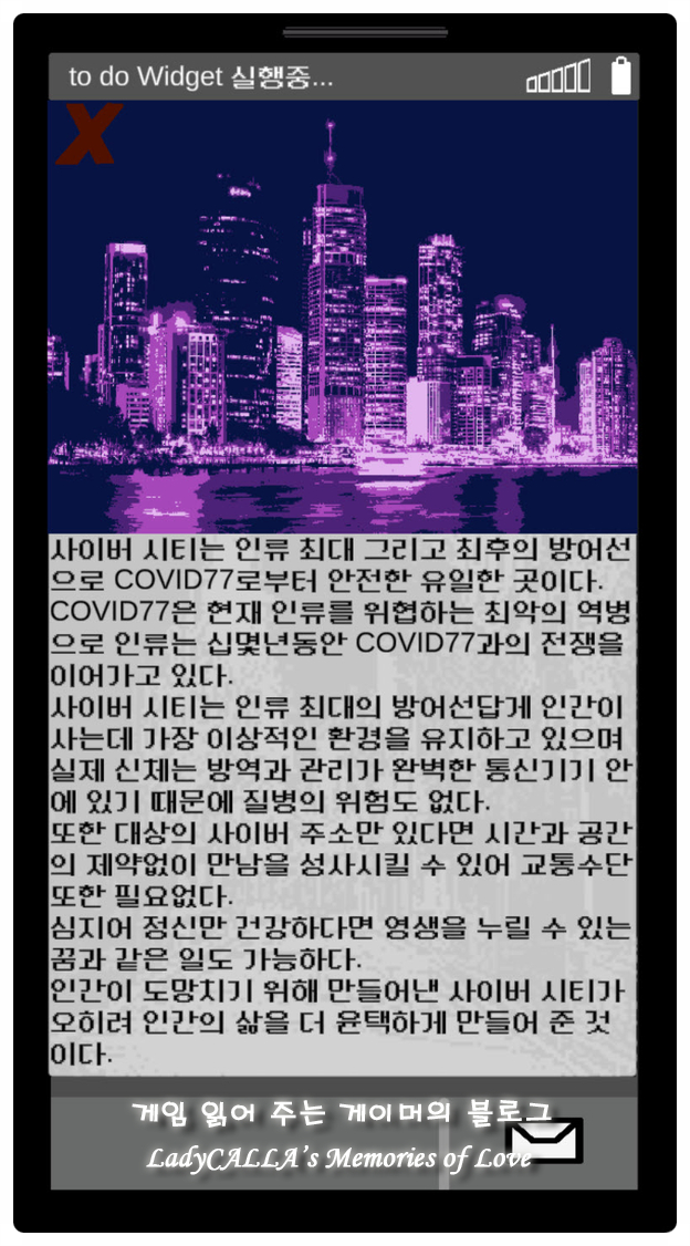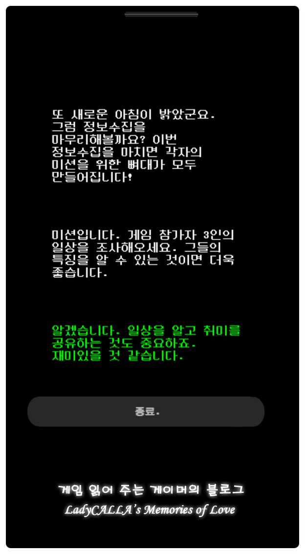 모든 작품 내 스토리가 게임 내 스마트폰 상에서 진행되는 만큼, 양대 모바일 스토어 쪽으로도 출시가 되어서 좀 더 다양하고 많은 유저분들의 관심을 받을 수 있게 되었으면 하는 바람인데, 스팀쪽 판매량이 너무 저조하여 어찌될런지 잘 모르겠다.