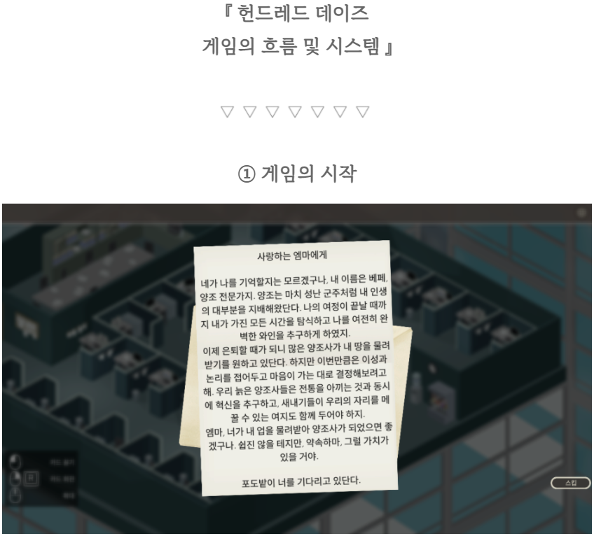 대충 TV에 넷플릭스 켜 놓고, 와인 한 모금 마시고 치즈 우물우물 씹다 보면 문득, 내가 와인에 대해 아는 것이 하나도 없다는 생각이 들곤 한다. 왠지 와인에 대한 기본적인 지식수준을 갖추면 조금 더 맛있게(?) 마실 수 있을 것 같다는 느낌이라고 해야 하나. 그러던 중 마침 기회가 되어, 와이너리 건설/경영 시뮬레이션 게임인 『 헌드레드 데이즈 - 와인메이킹 시뮬레이터 』의 플레이를 하게 되었기에, 관련 소개 글을 작성해 보고자 한다.