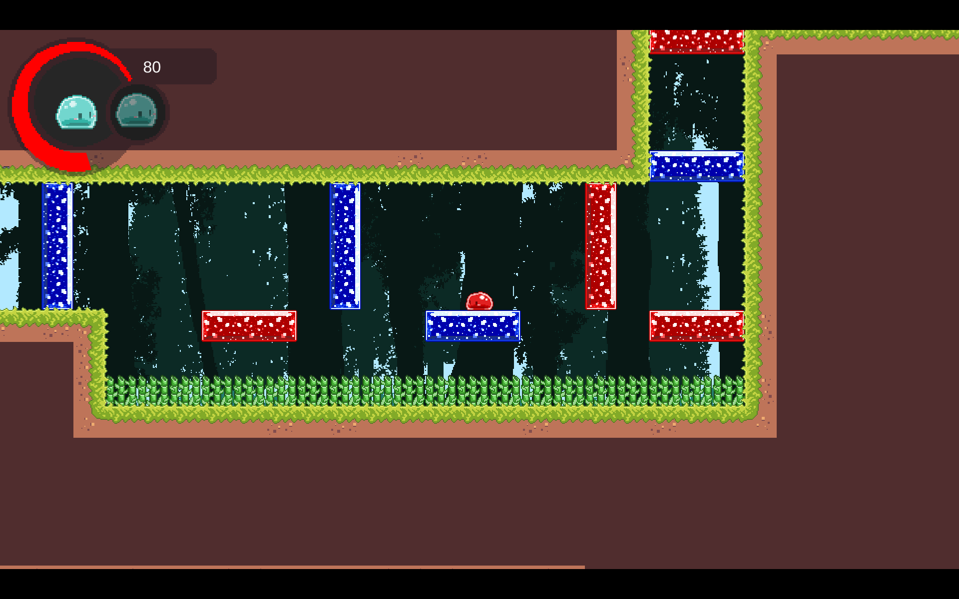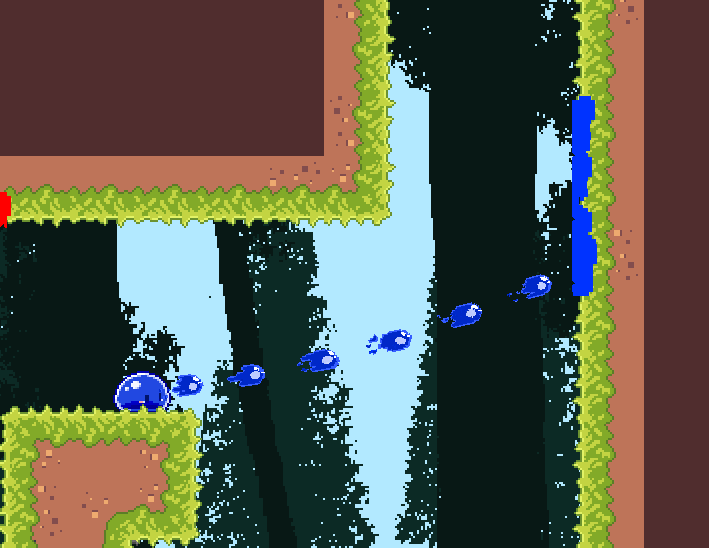 생긴 것은 슬라임이지만 의외로 매끄러운 주인공은 동일한 색상의 물감이 칠해진 곳이 아니면 들러붙지 못합니다. 때문에 물감을 뿌려서 칠해진 물감 안으로 잠수하여 벽을 타고 오르거나 천장에 붙어 이동할 수 있습니다. 이동을 하게 되면 칠해진 물감을 흡수하기에 어디로 얼만큼 이동할지 미리 계산해두고 이동하거나, 아니면 살짝 공중으로 점프한 다음, 공중에서 이동하고픈 곳에 물감을 뿌리고 다시 대쉬를 활용해 그곳으로 잠수해서 이동할 수도 있습니다. 대쉬는 기본적으로 한 번, 또 조금 기다리면 한 번 더 해서 총 2번 할 수 있고, 대쉬를 위해 우클릭을 누르고 있는 동안에는 공중에서 잠시 동안 머물 수 있습니다. 이를 이용해 물감을 뿌리는 전략인 것이지요.