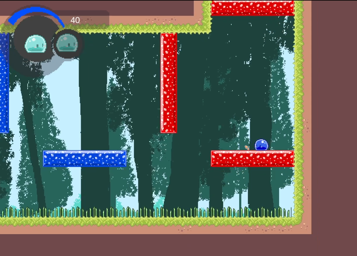 몬스터가 등장하는 것은 데모의 후반부인데, 여기서 슬라임이라는 특성을 이용해 해당 몬스터로 변신하고, 다른 색의 몬스터를 공격해서 제압한 후 물감 조각 같은 것을 얻을 수 있습니다. 아, 그리고 슬라임은 같은 색으로 구분되어있는 적이나 함정에는 데미지를 입지 않습니다. 때문에 이를 잘 활용해서 데미지를 최소화 하면서 플레이 할 수도 있습니다.